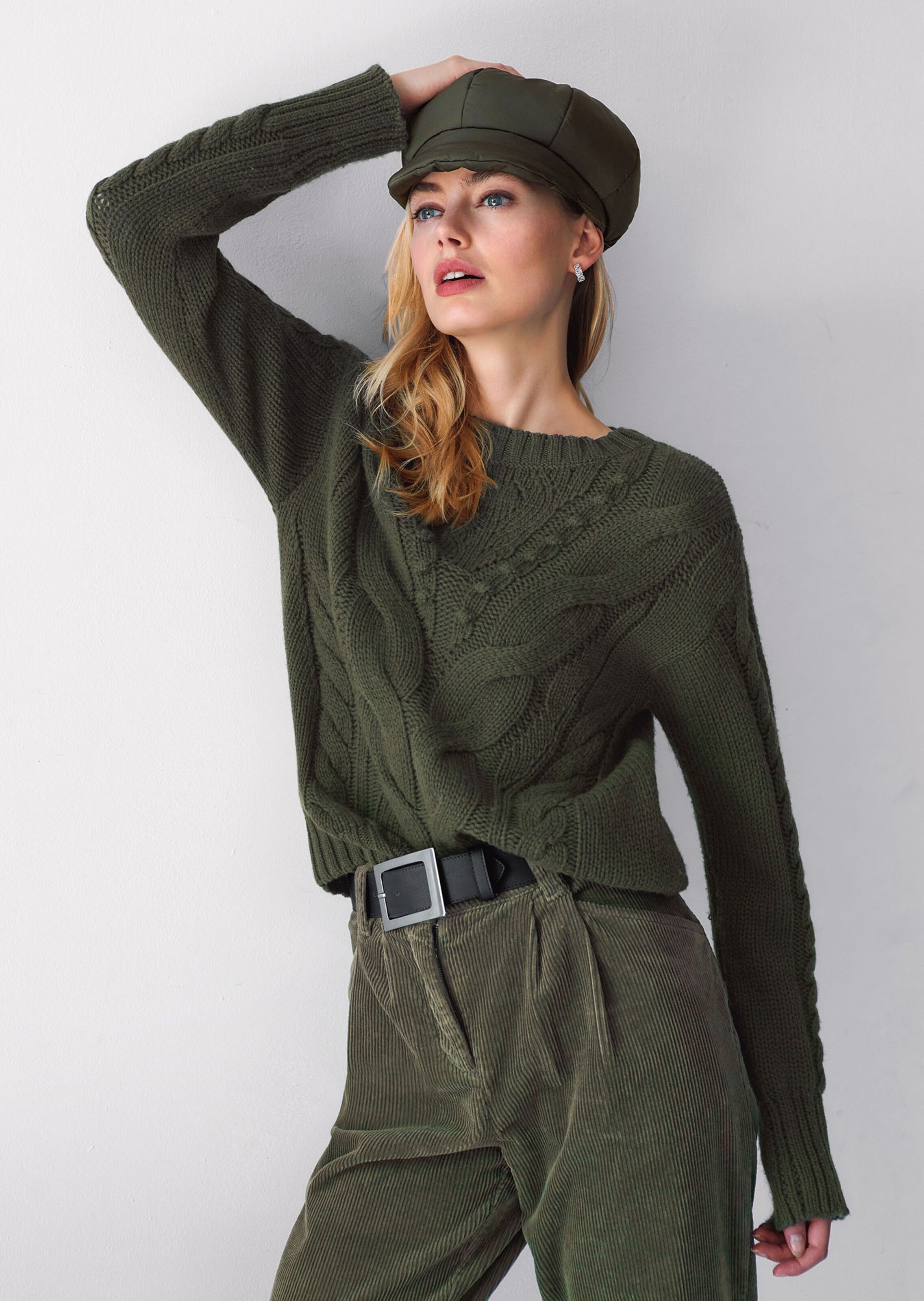 Ein starker Effekt: Der Strickpullover mit Zopfmuster zeigt den raffiniert platzierten Musterstrick in überdimensionaler Variante. Der lässige Style ist mit Rundhalsausschnitt, Langarm, überschnittenen Schultern und Rippenabschlüssen gestaltet. Der wertvolle Strick im Baumwoll-Merino-Mix trägt sich angenehm wärmend.