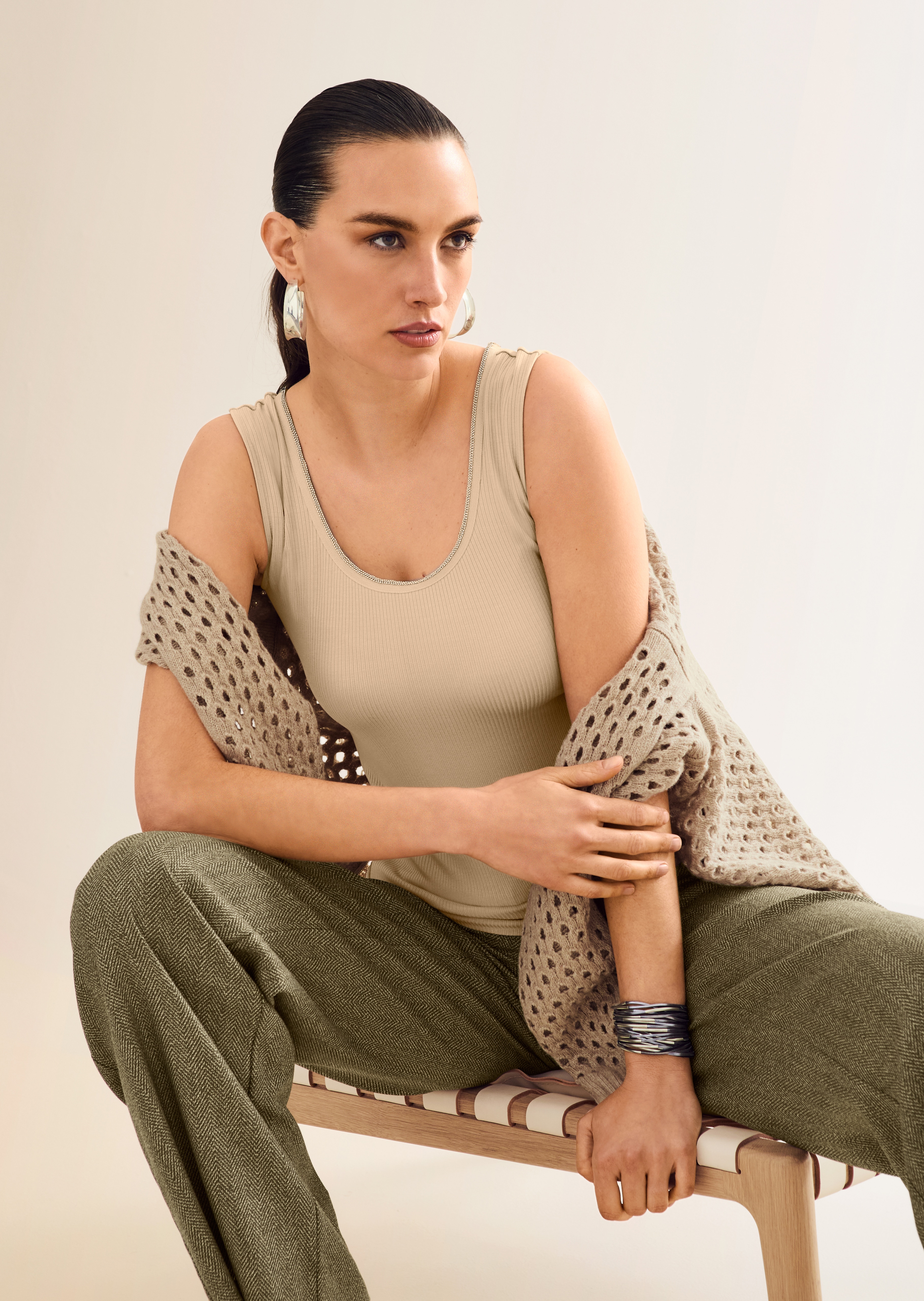 Ein schlichtes Träger-Top, das viel Komfort bietet und durch die am Rundhals-Ausschnitt gearbeitete, feine Ketten-Paspelierung mit viel Liebe zum Detail begeistert. Hautschmeichelnd im Trage-Gefühl und dank Stretch-Anteil super bequem ist der ärmellose Style mit breiten Komfort-Trägern gearbeitet. Ein zauberhafter Trendbegleiter, der sanft die feminine Linie betont und vielseitig kombiniert werden kann.
