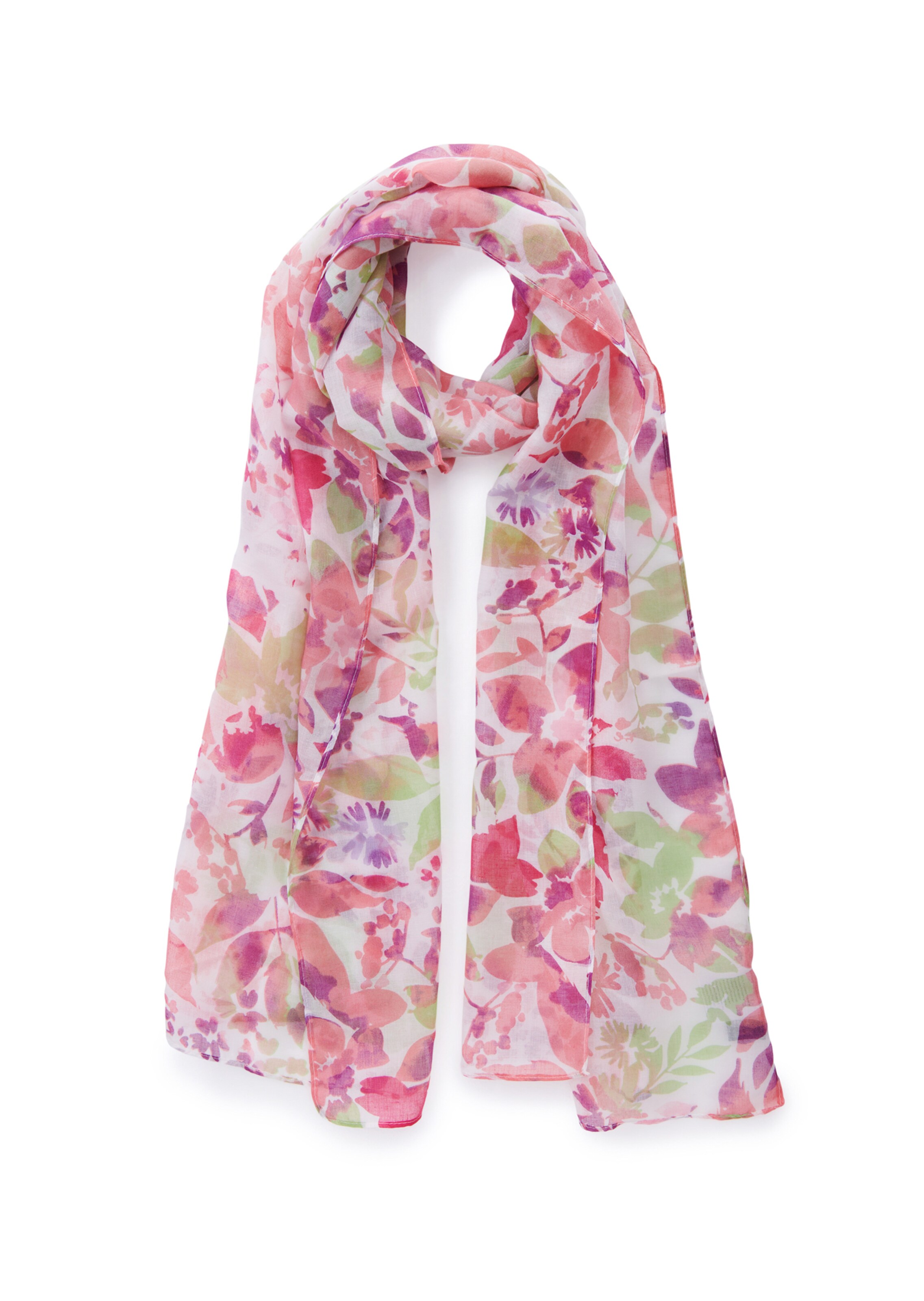 Der Blumen-Boom geht in die nächste Fashion-Runde. Auch in der Saison mischen Flowers wieder bei allen Trend-Schals mit. Auf diesem soften Oversized-Modell sind es plakative Blüten, die im Zusammenspiel mit stilisierten Blättern zum Eyecatcher werden.