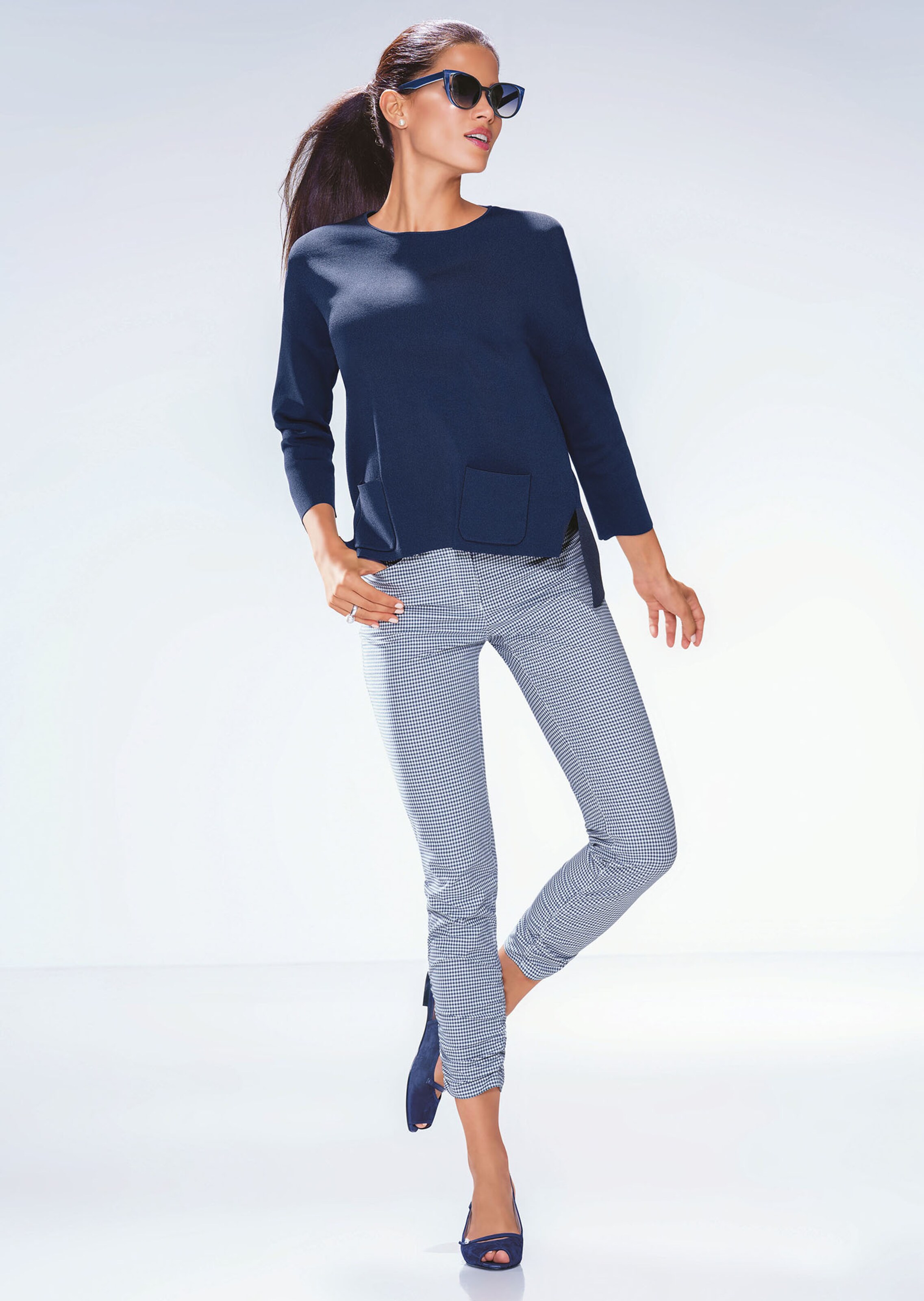 Die Vichykaro Hose im zarten Ton ist eine stilvolle Allrounderin eleganter Sommerstylings. Der schlanke 5-Pocket-Style zeichnet eine schmale Beinlinie. Ausgestattet mit Formbund, M-Logo-Knopf, Gürtelschlaufen und seitlicher, modischer Raffung zeigt sie sich in moderner, femininer Version. Durch ihre Farbgebung lässt sich die Sommerhose auch perfekt zu maritimen Stylings ergänzen. Der angenehme Baumwoll-Mix trägt sich schön kühl – auch an wärmeren Tagen. Zwei Größenläufe werden auch den Anforderungen kleinerer Frauen gerecht.