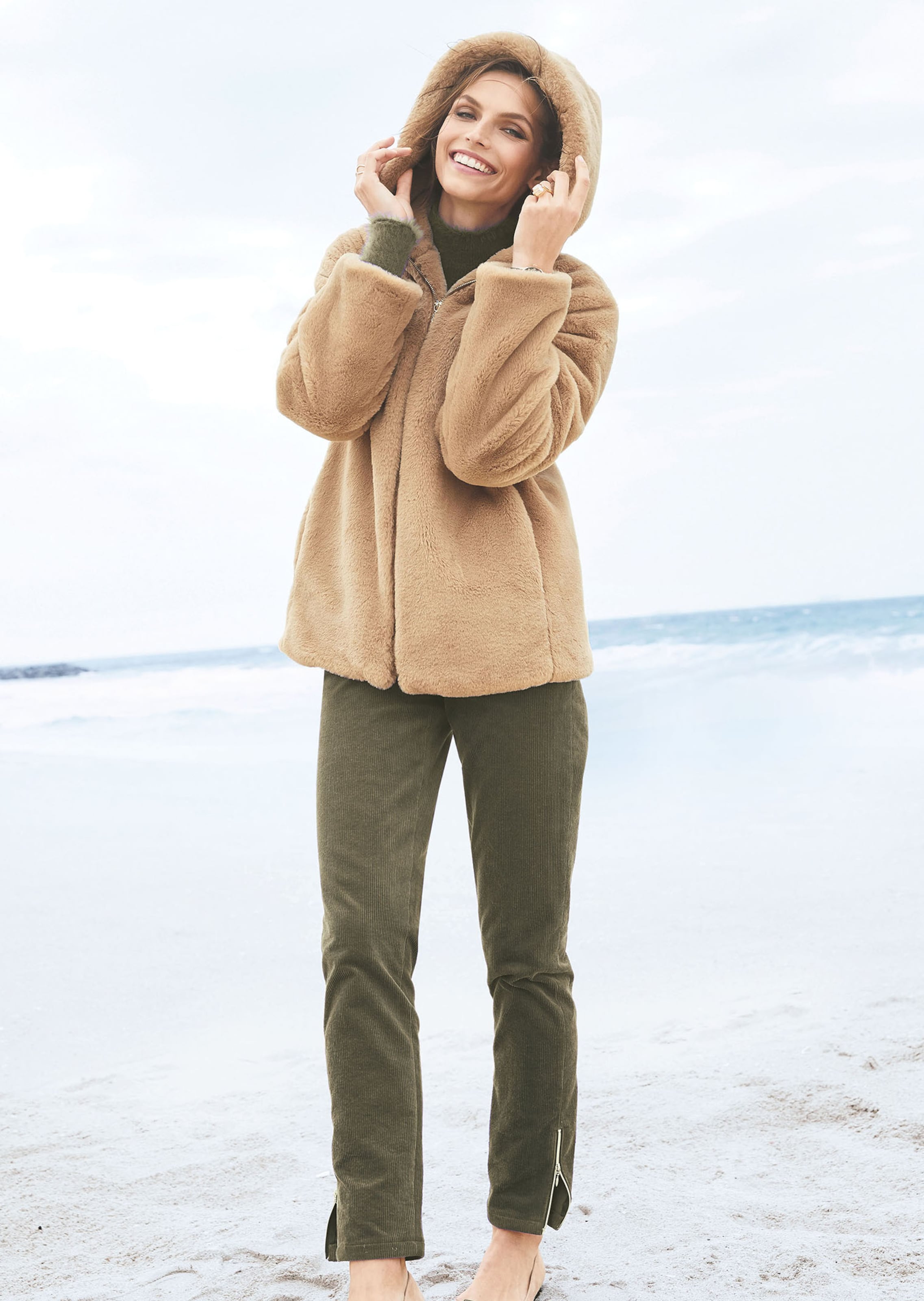 FAKE FUR ist in aller Munde und begeistert besonders an den kühleren Tagen des Jahres. Eine kuschelig weiche Webpelzjacke in modisch aktuellem Stil, die warm hält und trendstarke Akzente setzt. Dank der geraden, komfortablen Form sitzt sie besonders leger und schenkt angenehme Bewegungsfreiheit. Die großzügige Kapuze schützt bei kalten Temperaturen und verleiht dem It-Piece seine lässig sportive Note. Integrierte Nahttaschen sind nahezu unsichtbar und schaffen den nötigen Stauraum. Der praktische Zwei-Wege-Reißverschluss zeigt sich mit authentischem Logo-Puller und erlaubt zahlreiche Trage-Varianten. Weich glänzendes Satin-Futter rundet den Style eindrucksvoll ab und sorgt für problemloses Ein- und Aussteigen.