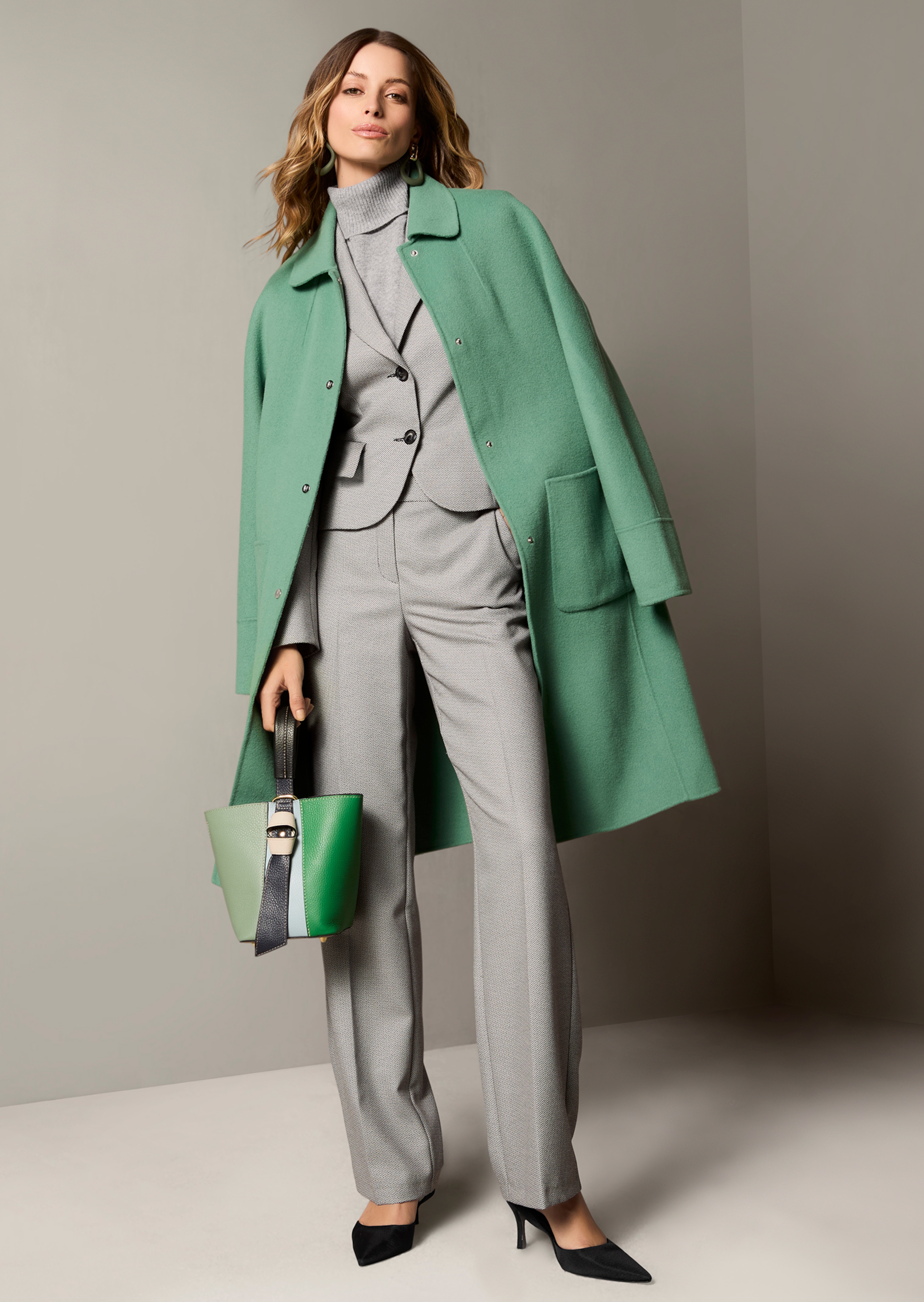 Eine Hose in komfortabler Stretch-Qualität, die durch ihre weite Beinform mit lässig eleganter Note überzeugt. Die schräg eingearbeiteten Taschen bieten praktischen Stauraum, während der Formbund mit Gürtelschlaufen Halt gibt und für eine perfekte Passform sorgt. Rückseitige Zierpaspeln deuten Gesäßtaschen an und verleihen der Hose eine Prise Raffinesse. Gepflegte Bügelfalten an Vorder- und Rückseite unterstreichen den stilvollen Look und machen diese Hose zur idealen Wahl für jeden Anlass. Kombinieren Sie Komfort mit Stil – und bestellen jetzt Ihre neue Lieblingshose.
