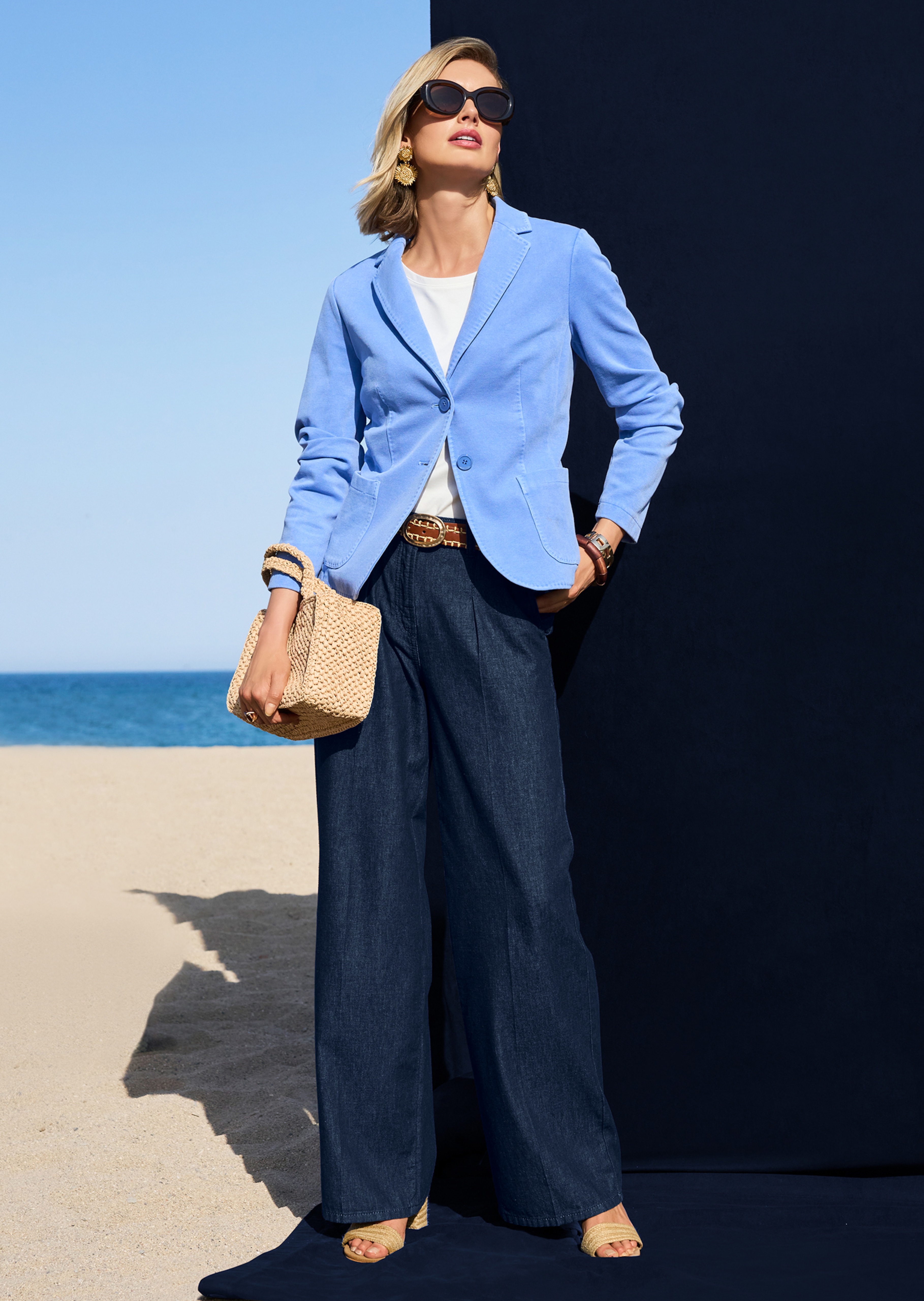 Eine weite Hose im Denim-Look, hier jedoch aus weich fließender Zellulose-Faser. Das hautschmeichelnde Garn ist angenehm kühl auf der Haut und ideal für den Sommer. Die großzügig weite Beinform umspielt locker die Figur und glänzt mit modisch souveräner Ausstrahlung. Ein trendstarker Look, der durch Bundfalten und rückseitige Bügelfalten eine gepflegte Note erhält. Der Formbund mit Gürtelschlaufen sitzt bequem auf der Hüfte und ist per Zipper und Logo-Knopf zu schließen. Eingearbeitete Front-Pockets und aufgesetzte Gesäßtaschen schaffen Platz und machen den Style komplett.