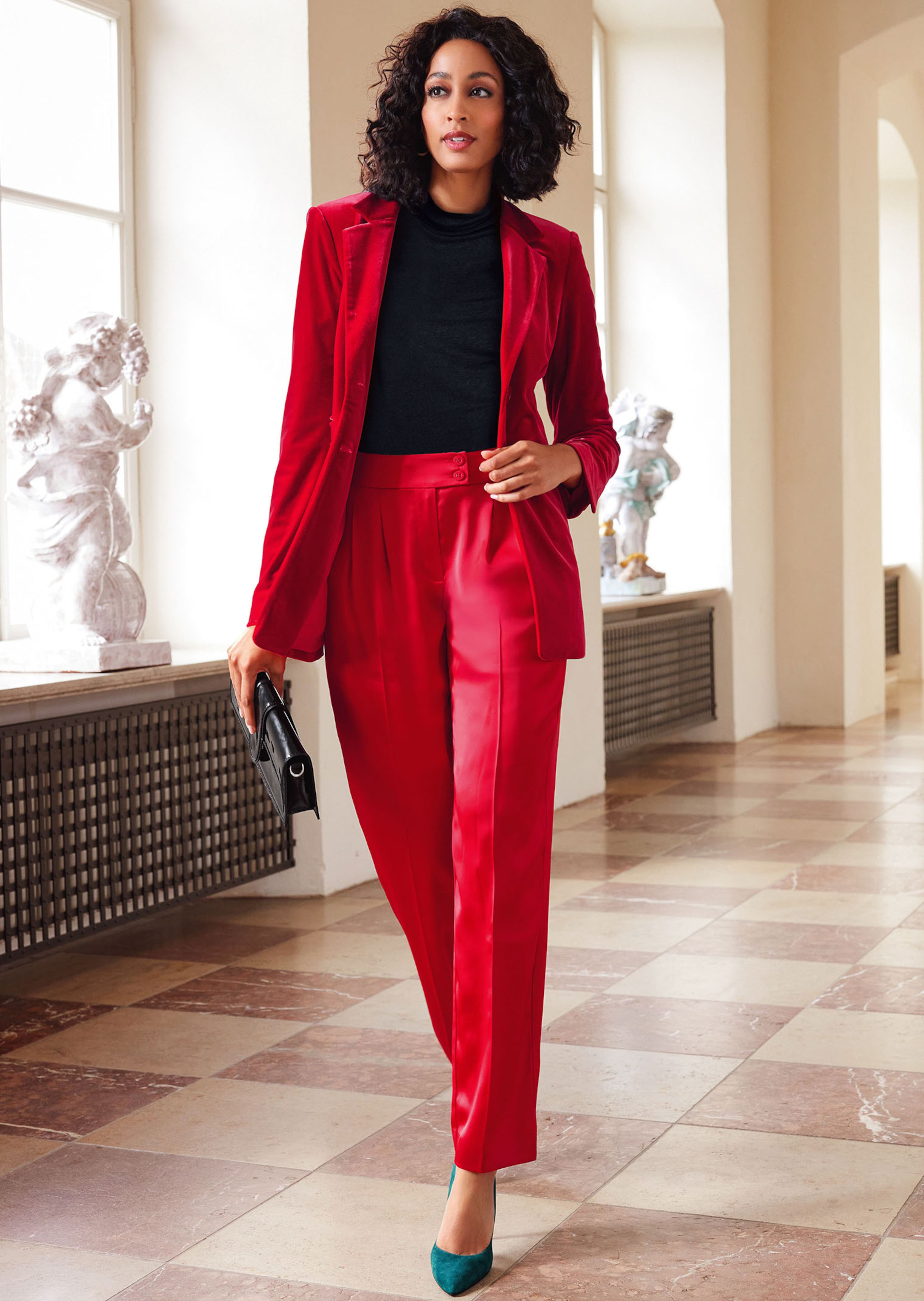 Edle Modernität und hoher Trage-Komfort machen diese Hose zu einem echten Lieblingsstück. Der weit geschnittene Satin mit Bund- und Bügelfalten ist durch das zart schimmernde Finish wie gemacht für stilbewusste Auftritte. Die bequeme Stretch-Qualität im Regular-Fit mit teilelastischem Formbund, Schubtaschen und rückseitigen Zierpaspeln kann von festlich bis trendy kombiniert werden.