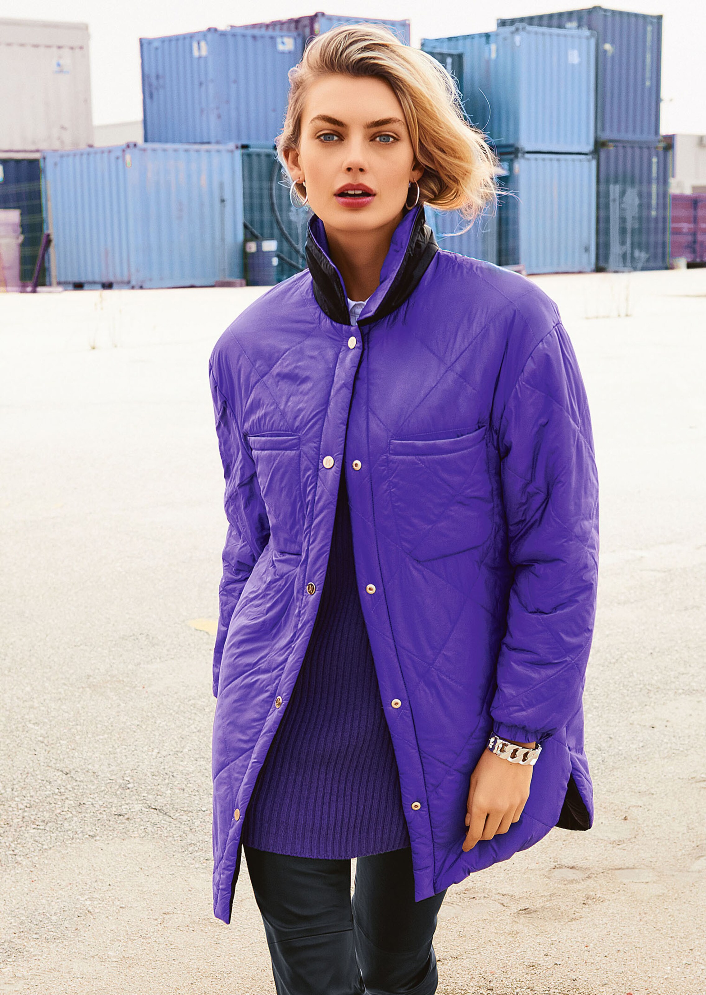 Eine Jacke mit zwei schönen Seiten: Die leicht wattierte Wende-Steppjacke im Shacket- und dezenten Oversized-Style können Sie in zwei verschiedenen Farben tragen – je nach Styling. Ausgestattet ist sie mit Rautensteppung, verlängertem Rückteil, großen Brusttaschen, Nahttaschen, Hemdkragen, Druckknöpfen und gerundeten Seitenschlitzen. Der Langarm hat einen praktischen Gummizugsaum. Egal, was Sie gerade planen, die Wendejacke ist die passende Partnerin. Dieser Artikel wurde aufgrund des Einsatzes von recyceltem Material ressourcenschonend produziert.