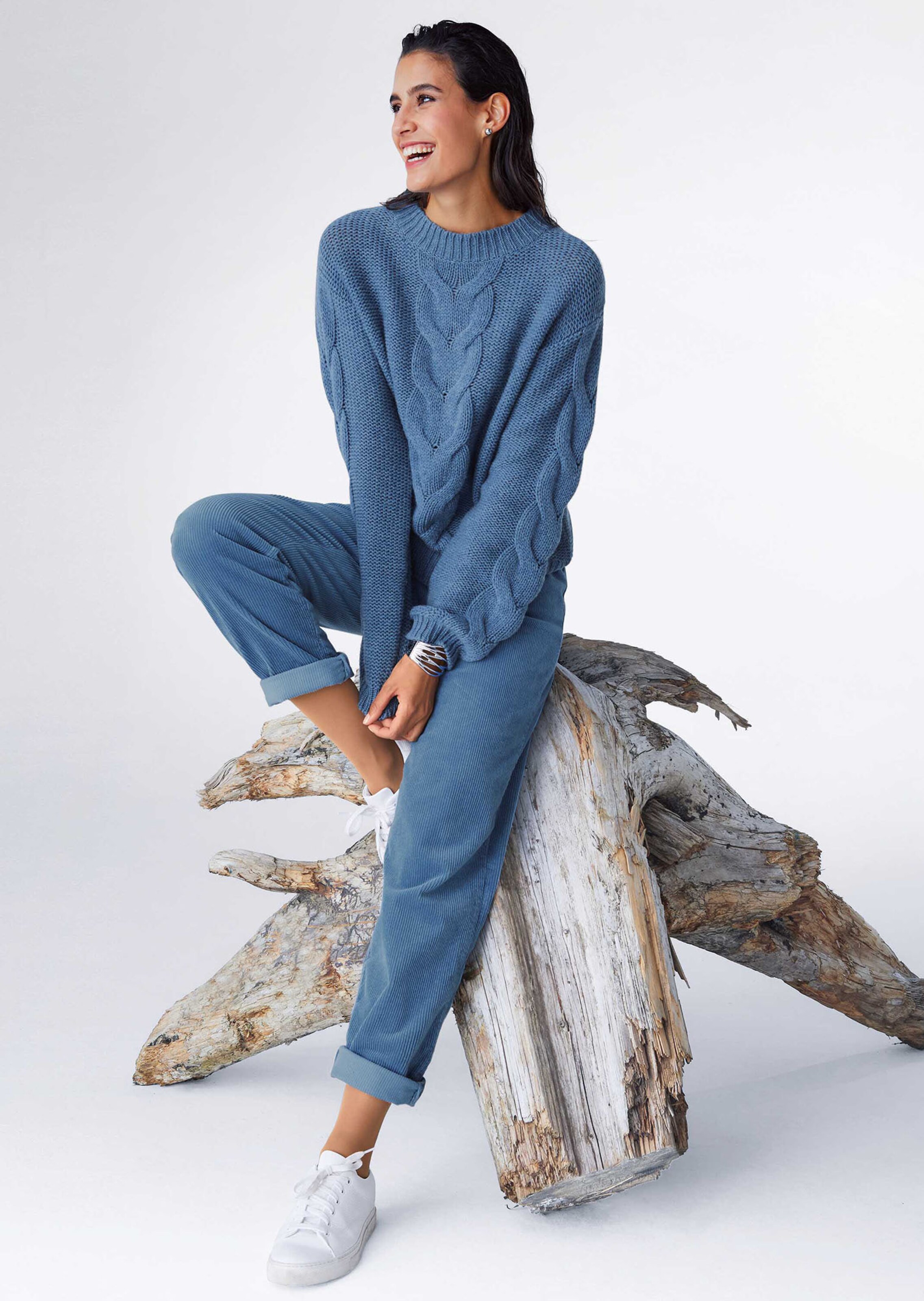 Kuschelig weich und warm im Charakter, betont feminin im Look: Der Pullover in kunstvollem Strick zeigt das aufwändige, schmückende Zopfmuster in der vorderen Mitte und an den Armen. Der kuschelige Schurwollstrick mit Kaschmir trägt sich herrlich wärmend. Der Style mit überschnittenen Schultern, Rundhalsauschnitt, Langarm, und Rippstrickbündchen wirkt sportlich und edel zugleich. Ein Winterpullover, der mit seiner Qualität und seiner Optik gleichermaßen begeistert.