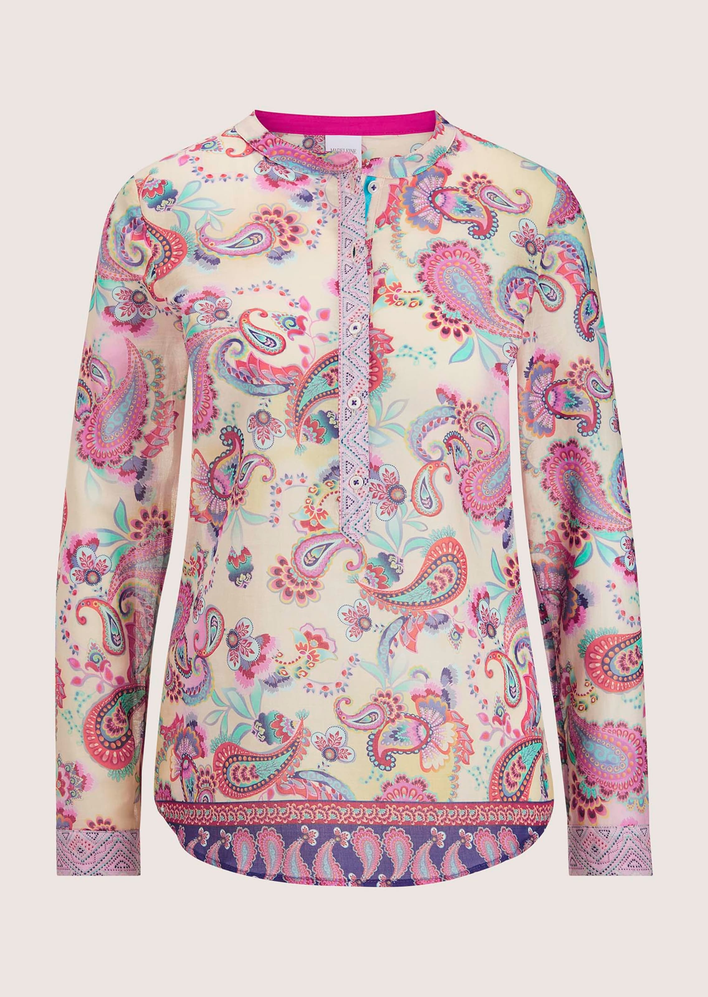 Style tunique décontracté et tendance. Petite bande de boutonnage sur l'encolure. Dos avec empiècement, pli creux et base légèrement arrondie. Manches longues avec fins poignets boutonnés.