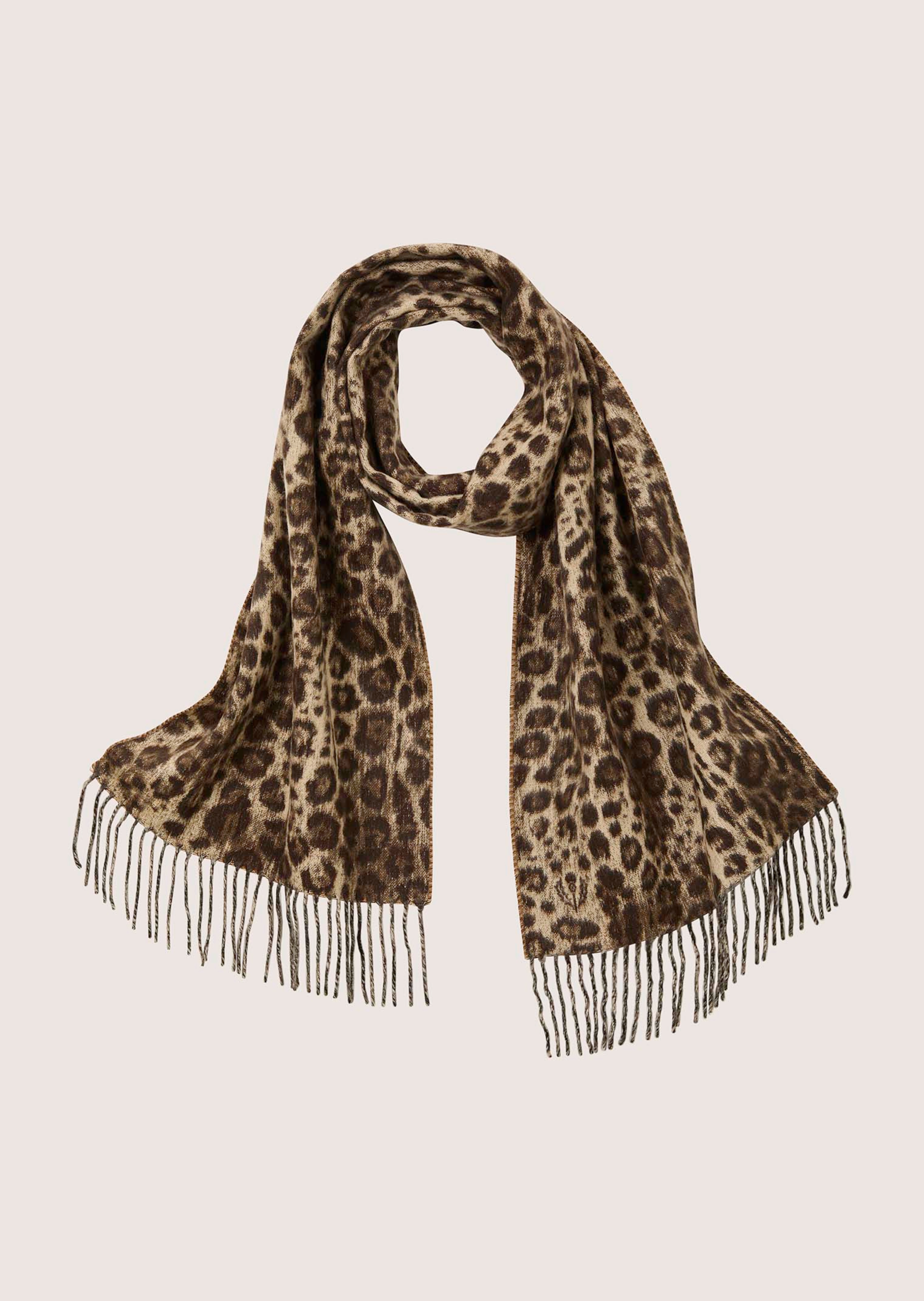 FRAAS. Motif léopard tendance et franges. Cashmink® chaud, très doux et agréable sur la peau.