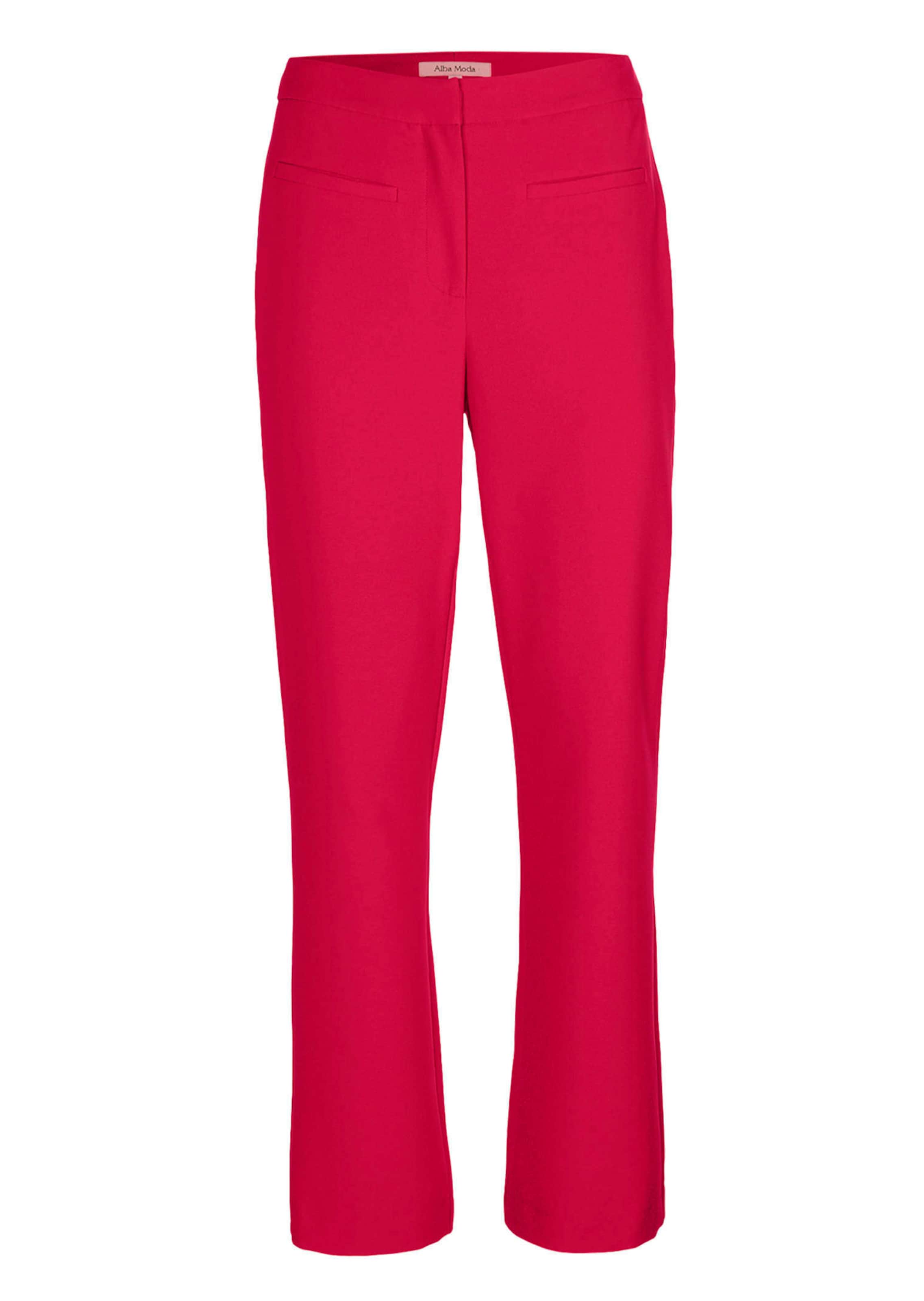 Coupe ajustée ALBA MODA. Jambes légèrement évasées. Fermé par zip et agrafe. Poches passepoilées devant.