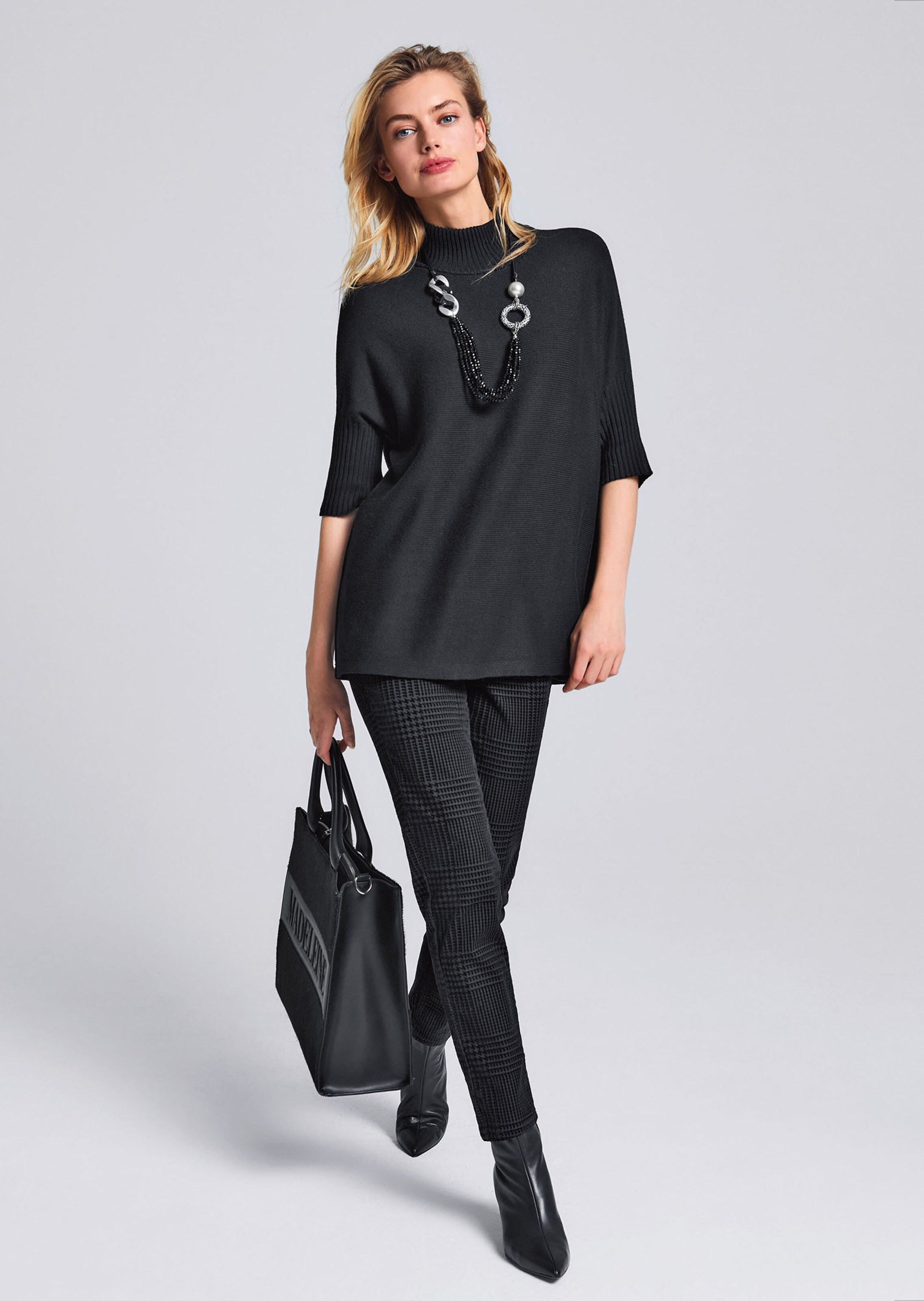 Velours dévoré haut de gamme avec motif pied-de-poule élégant. Passants, 5 poches, jambe fuselée longueur cheville.