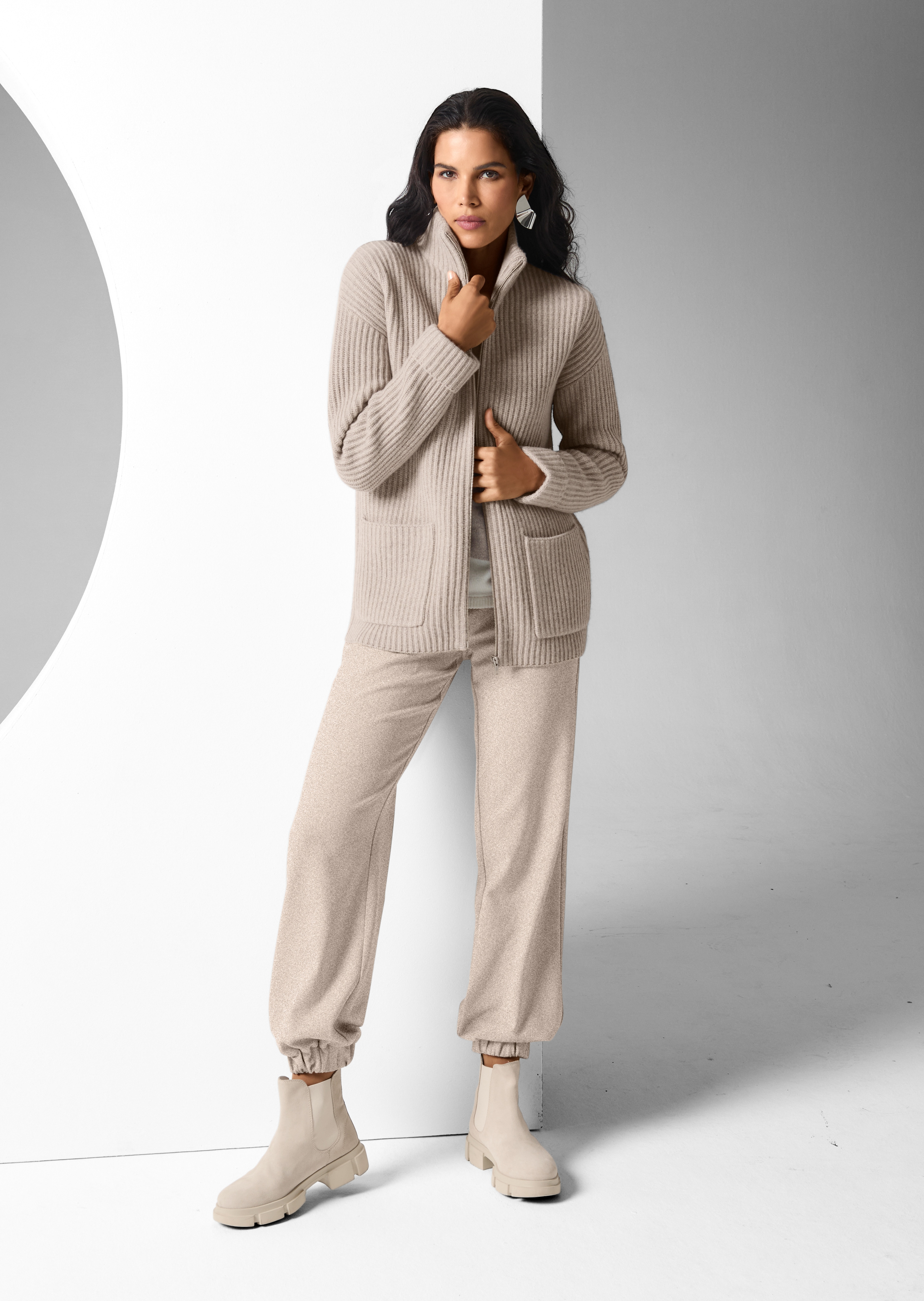 Stretch confortable. Coupe ample et décontractée. Taille large au dos et réglable devant par boucle de ceinture. Poches côtés en biais. Bas de jambes froncé et élastiqué.