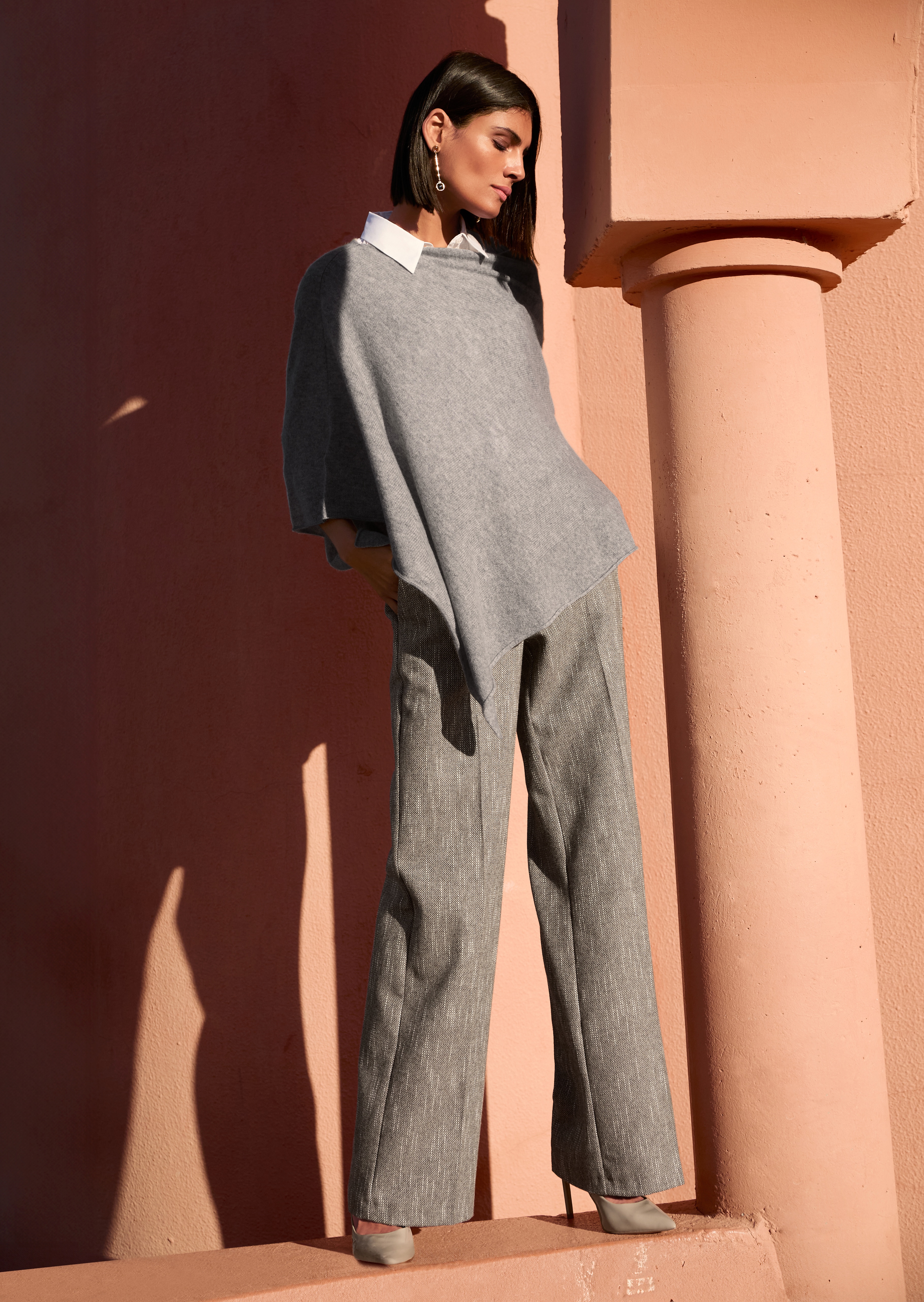 Fil naturel duveteux. Coupe tendance ample et décontractée. Très pratique, avec encolure en V féminine.