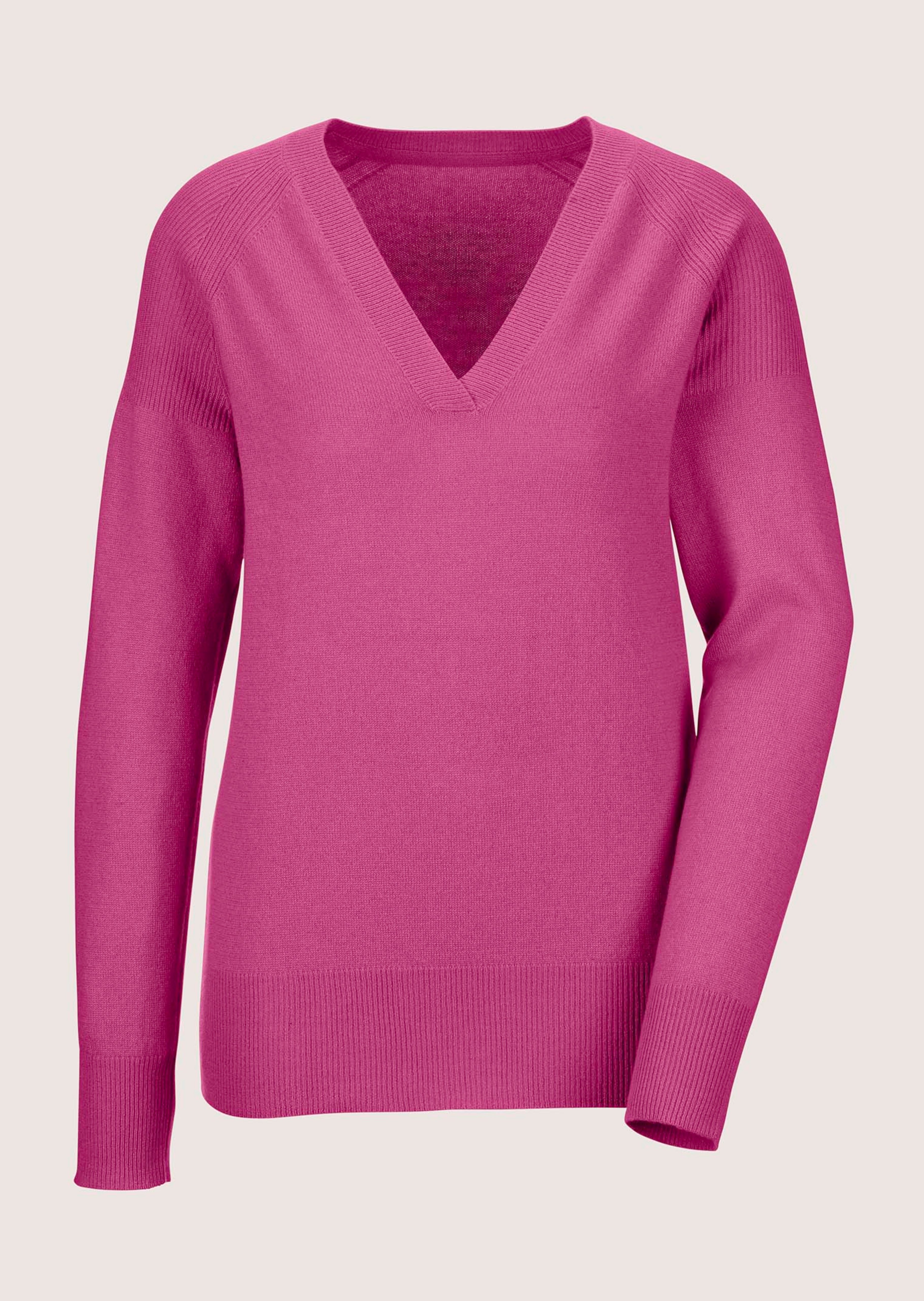 Un basique chic en laine de cachemire issue d’une production durable. Style tendance et décontracté. Encolure en V, manches longues et maille côtelée au niveau des emmanchures descendues.