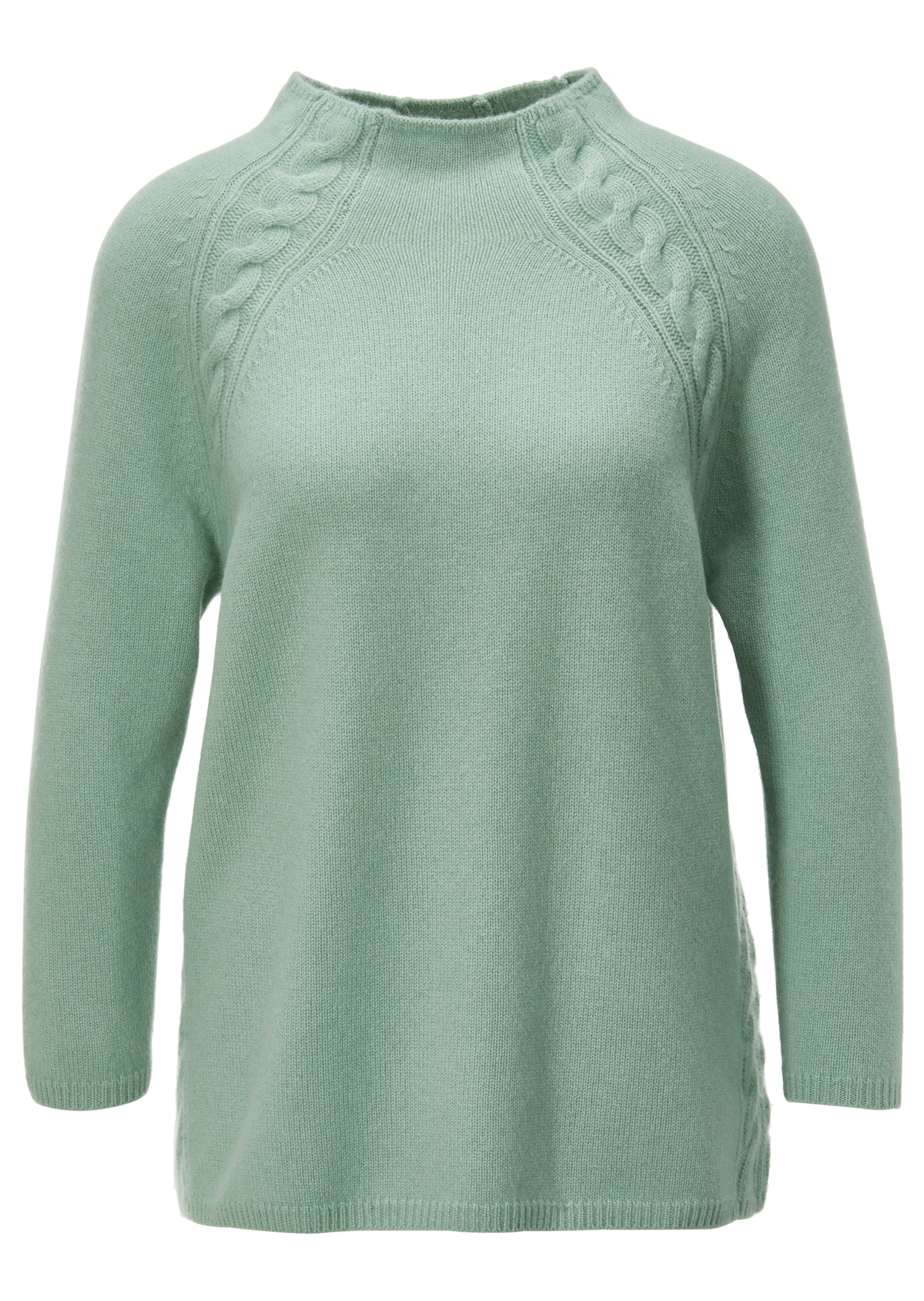 Qualité GOOD CASHMERE issue d'une production durable, moelleuse et ultralégère. Ligne boxy sport. Petit col montant, manches 3/4 et torsade le long des côtés et des emmanchures raglan.