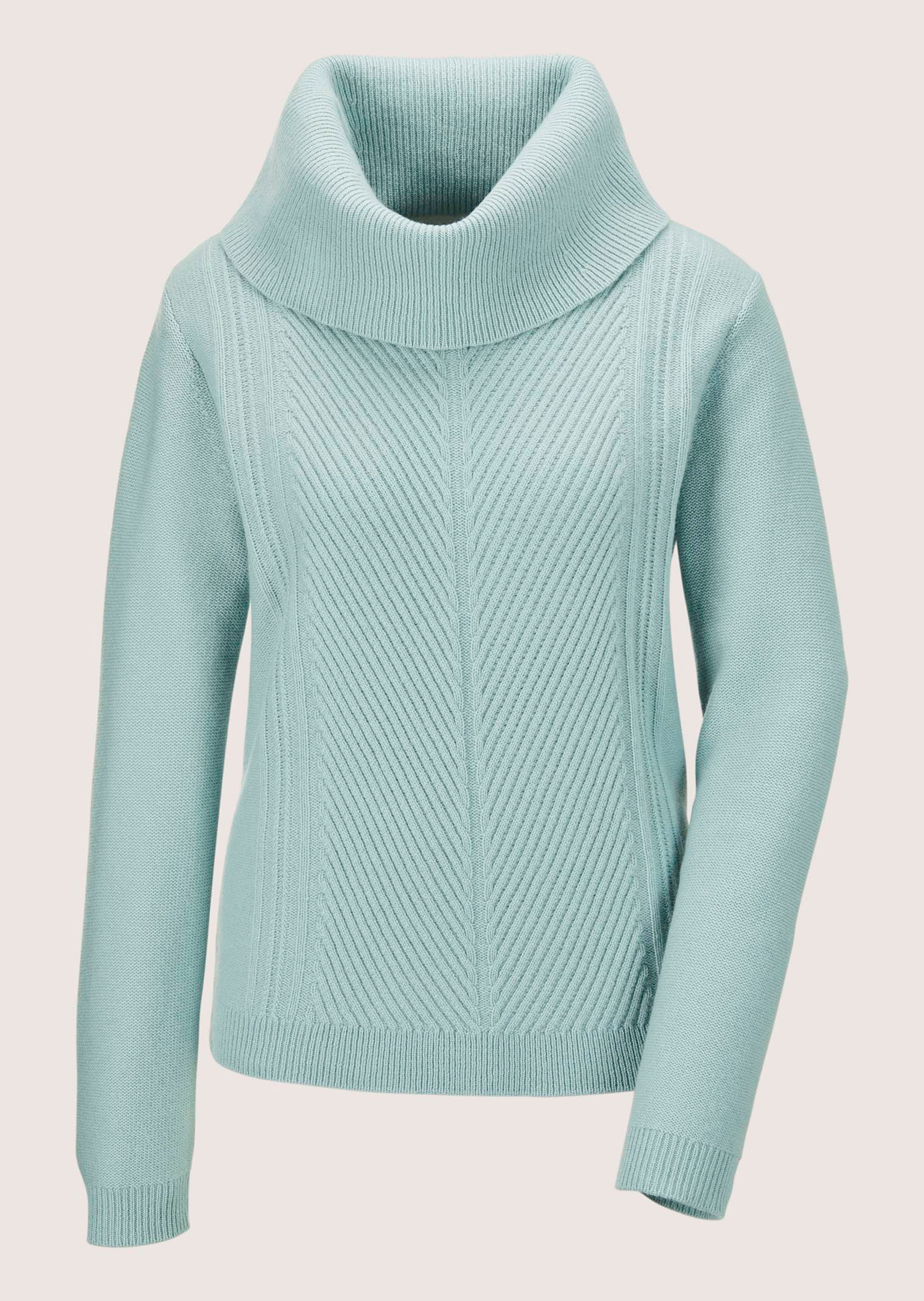 Fil luxueux, doux et agréable sur la peau. Maille jersey endroit et maille côtelée. Coupe décontractée. Col roulé souple, manches longues et bords-côtes d'une tenue irréprochable.