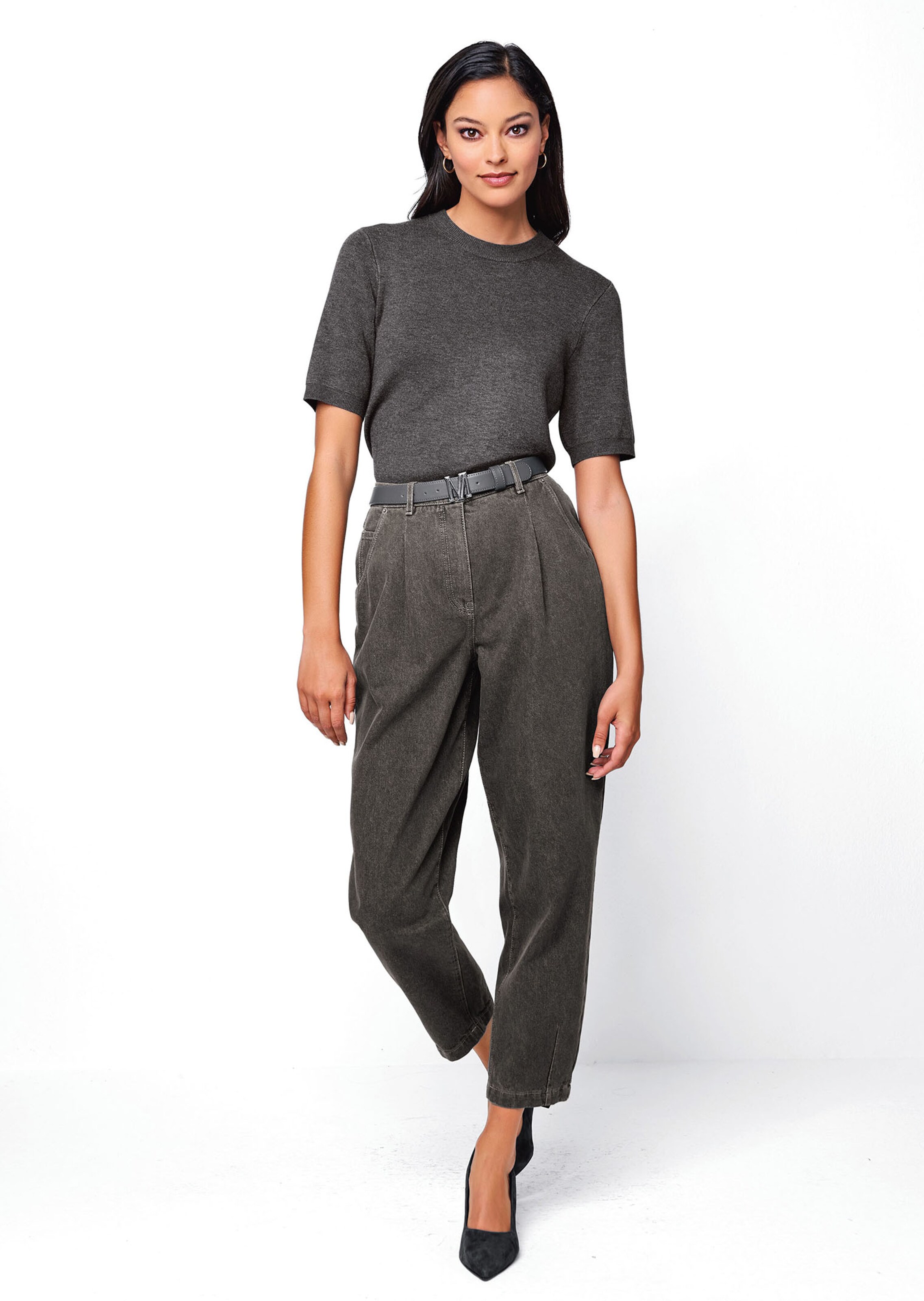 Style basique dans un mélange de fils qui flatte la peau. Coupe droite, encolure ronde et manches courtes.
