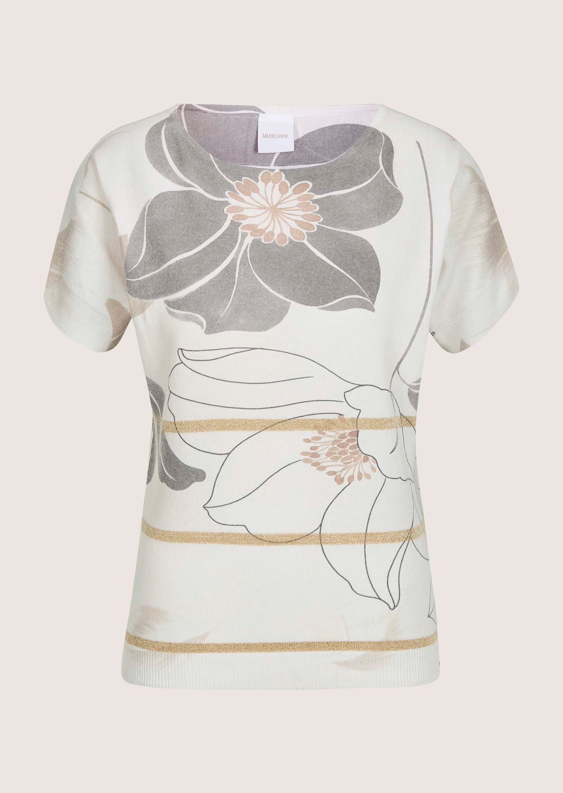 Fine maille légère et confortable en coton mélangé, avec imprimé fleuri et discrètes rayures brillantes. Sans manches, encolure arrondie et bords-côtes décontractés.