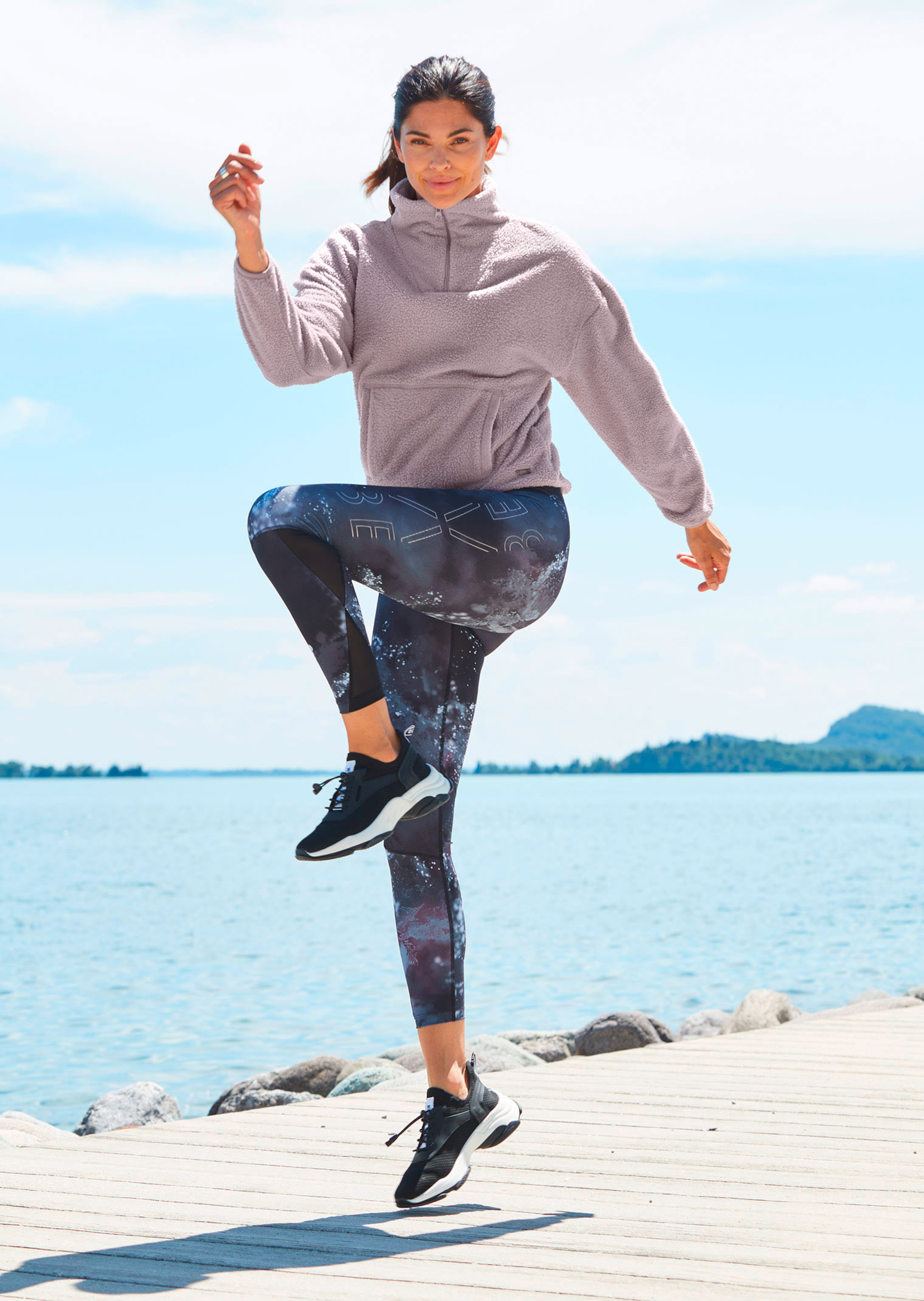 Das Fleeceshirt "Abby" von VENICE BEACH aus kuscheligem Teddy-Material ist flauschig-weich und angenehm zu tragen. Der Sport-Sweater mit Troyer-Kragen besticht vor allem durch die raffinierte Nahtführung im Rückteil und eine Kangarootasche vorne. Die langen Ärmel lassen sich mit Gummibündchen lässig hochschoppen. Ob beim oder nach dem Sport – dieses Fleece hält Sie immer warm. Länge in Gr. M ca. 58 cm.