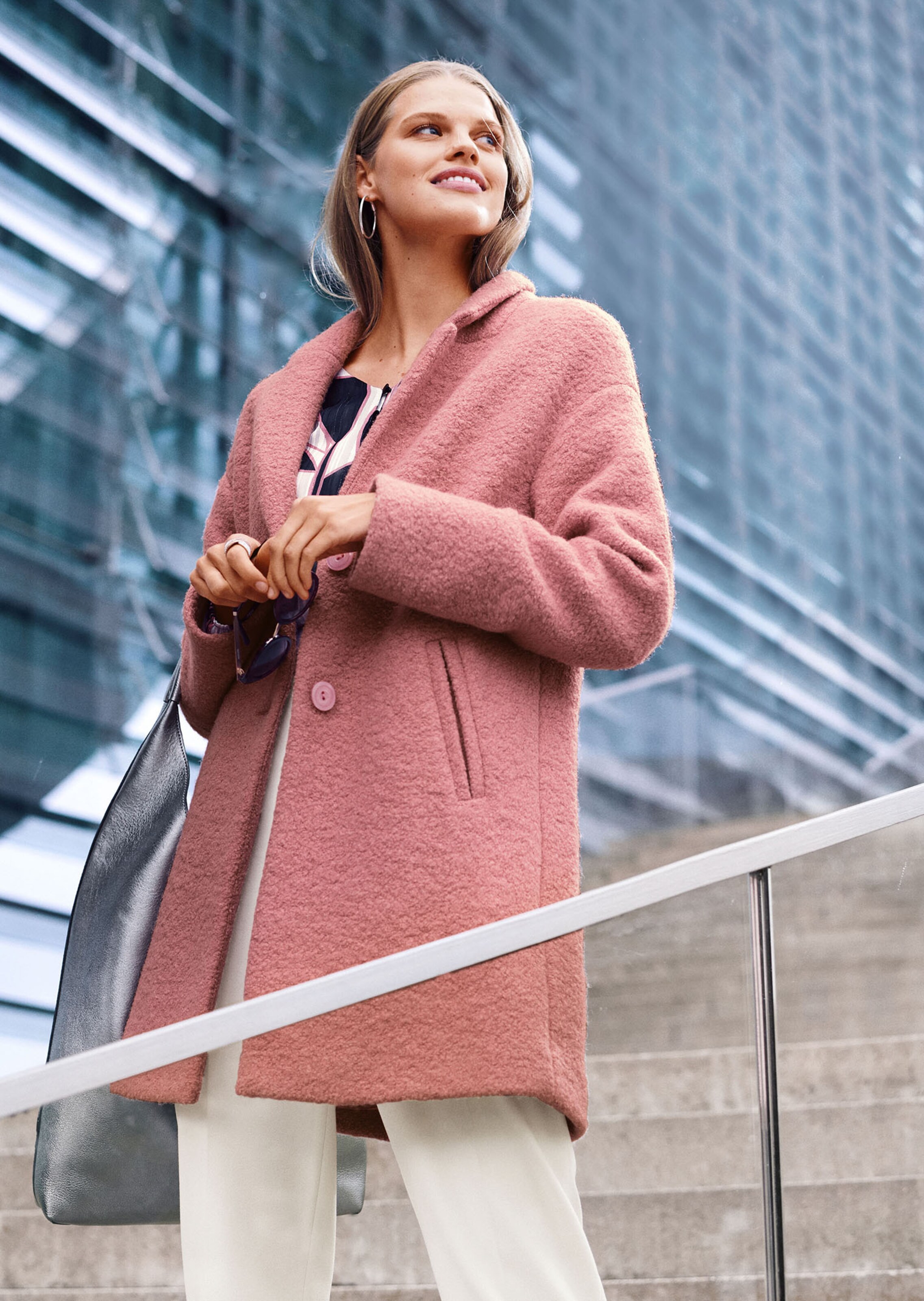 Modèle haut de gamme au style décontracté pour la mi-saison en laine foulée chaude et agréable. Coupe chic 2 boutons, légèrement maxi. Épaules descendues, manches longues et poches en biais passepoilées.
