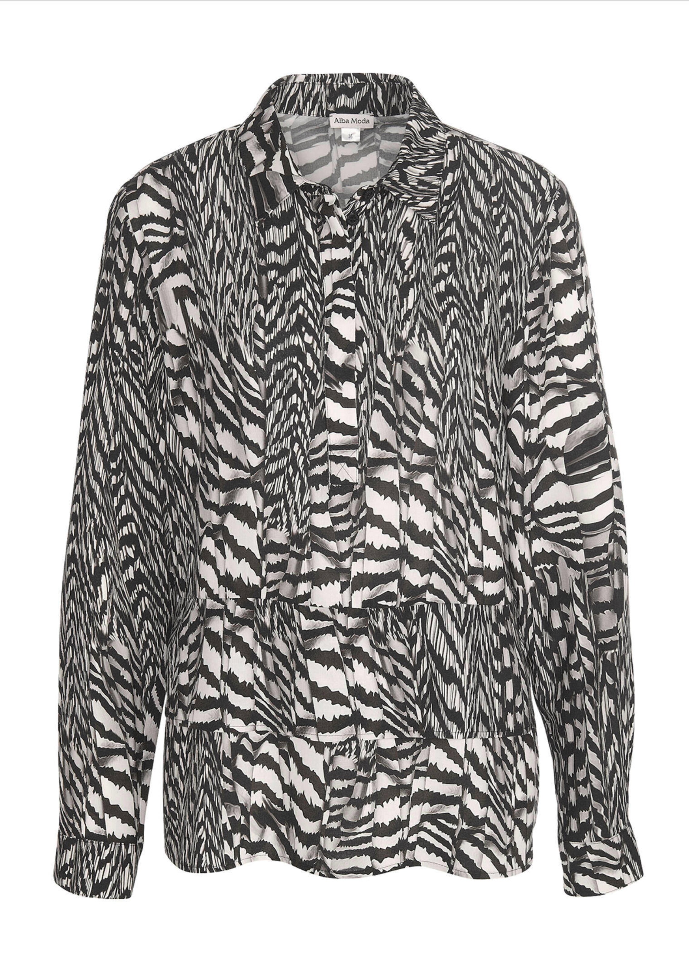 Modèle ALBA MODA avec petite basque et boutonnage sous patte. Fins poignets boutonnés.