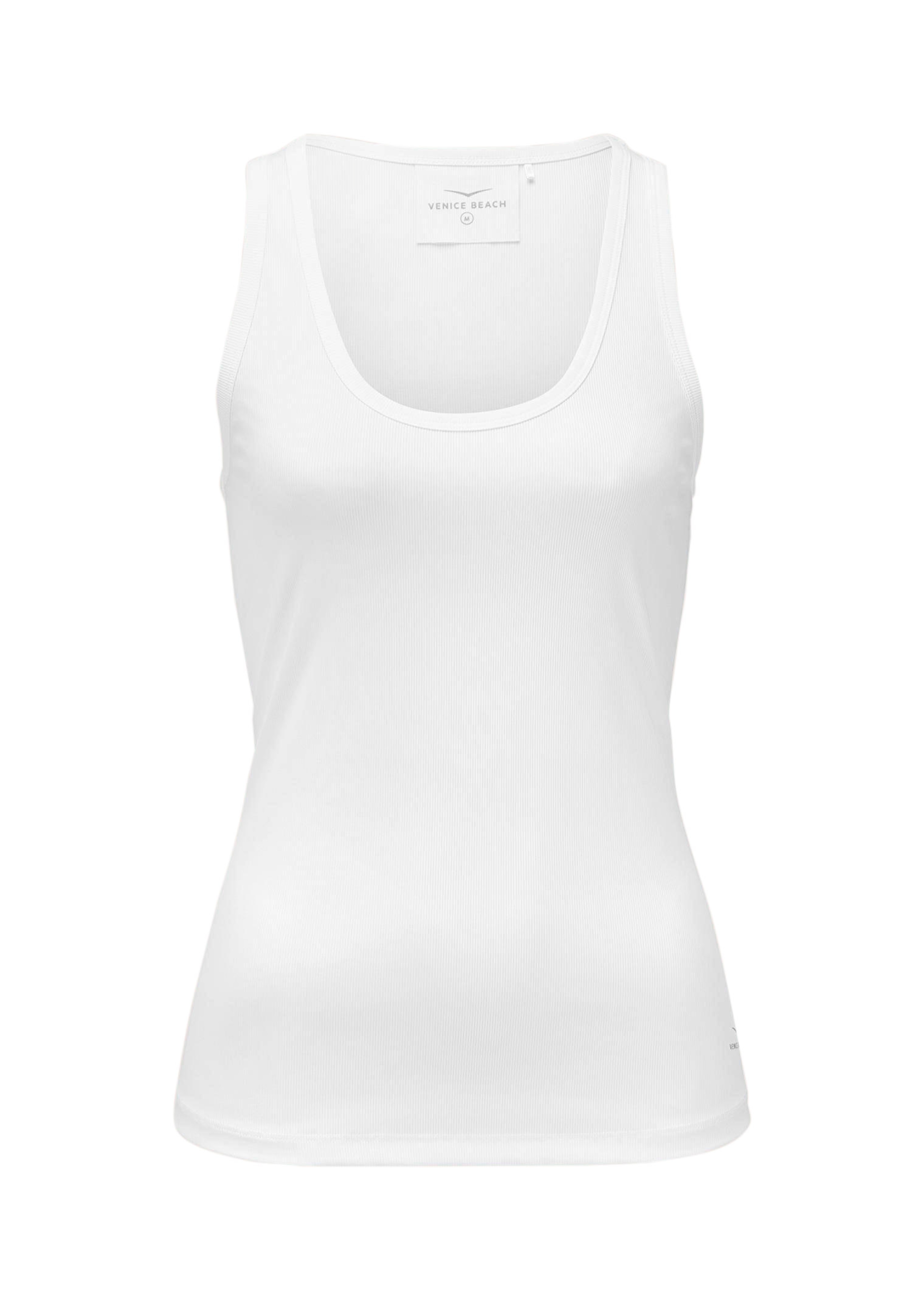 Modèle décontracté qui se porte en toute occasion. Top VENICE BEACH à la ligne épurée, avec encolure arrondie. Fine structure côtelée et logo tendance. Se porte seul en été, ou sous un pull. Idéal pour les tenues de sport et pour les looks casual. Extensible et confortable, grâce à l'apport en élasthanne.