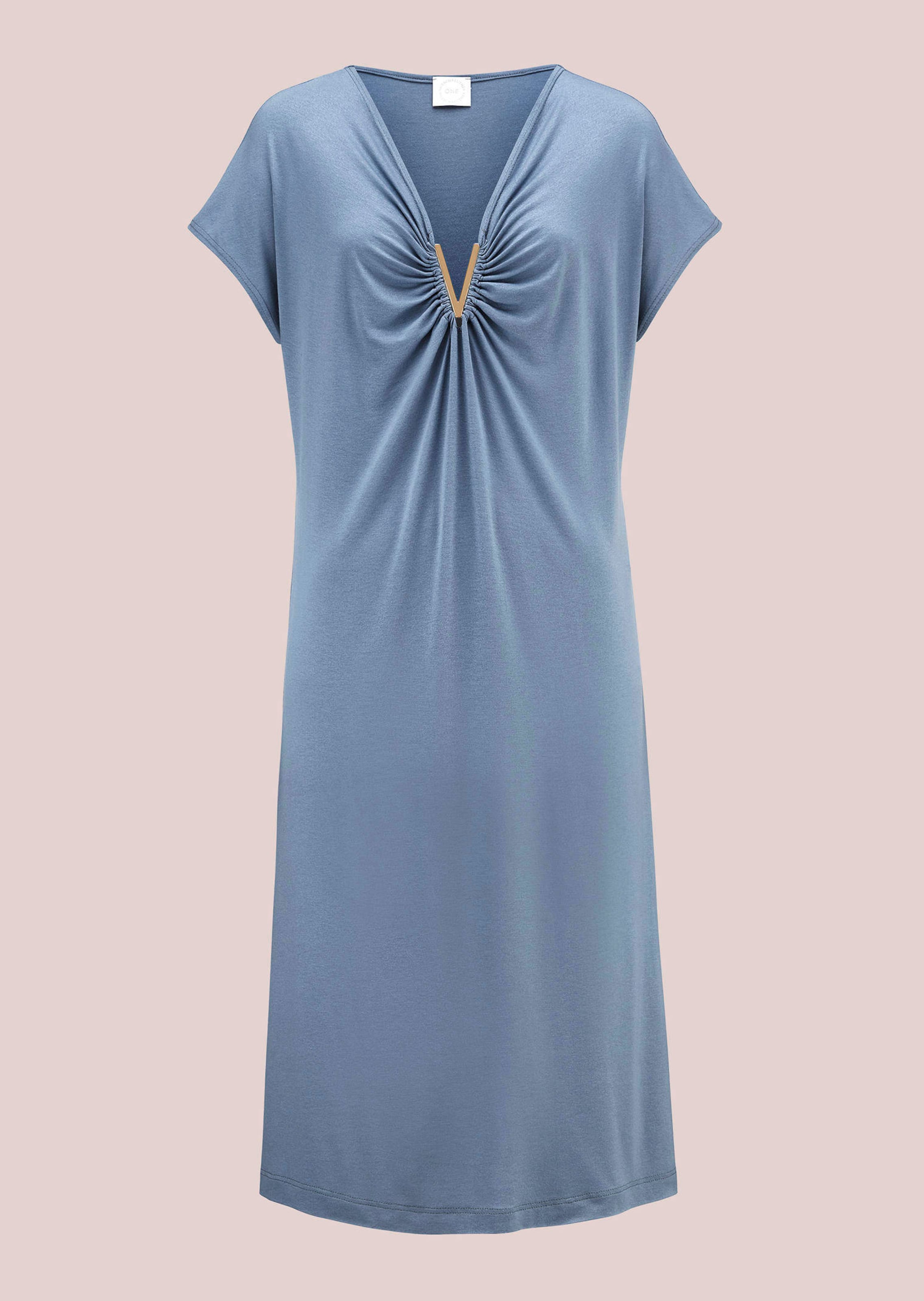 Chemise de nuit HUTSCHREUTHER. Modèle raffiné en viscose fluide. Encolure en V ornée d'un élément en métal brillant et légèrement froncée, pour une note féminine. Coupe tendance avec épaules descendues et longues fentes latérales, pour une ligne élégante et harmonieuse.