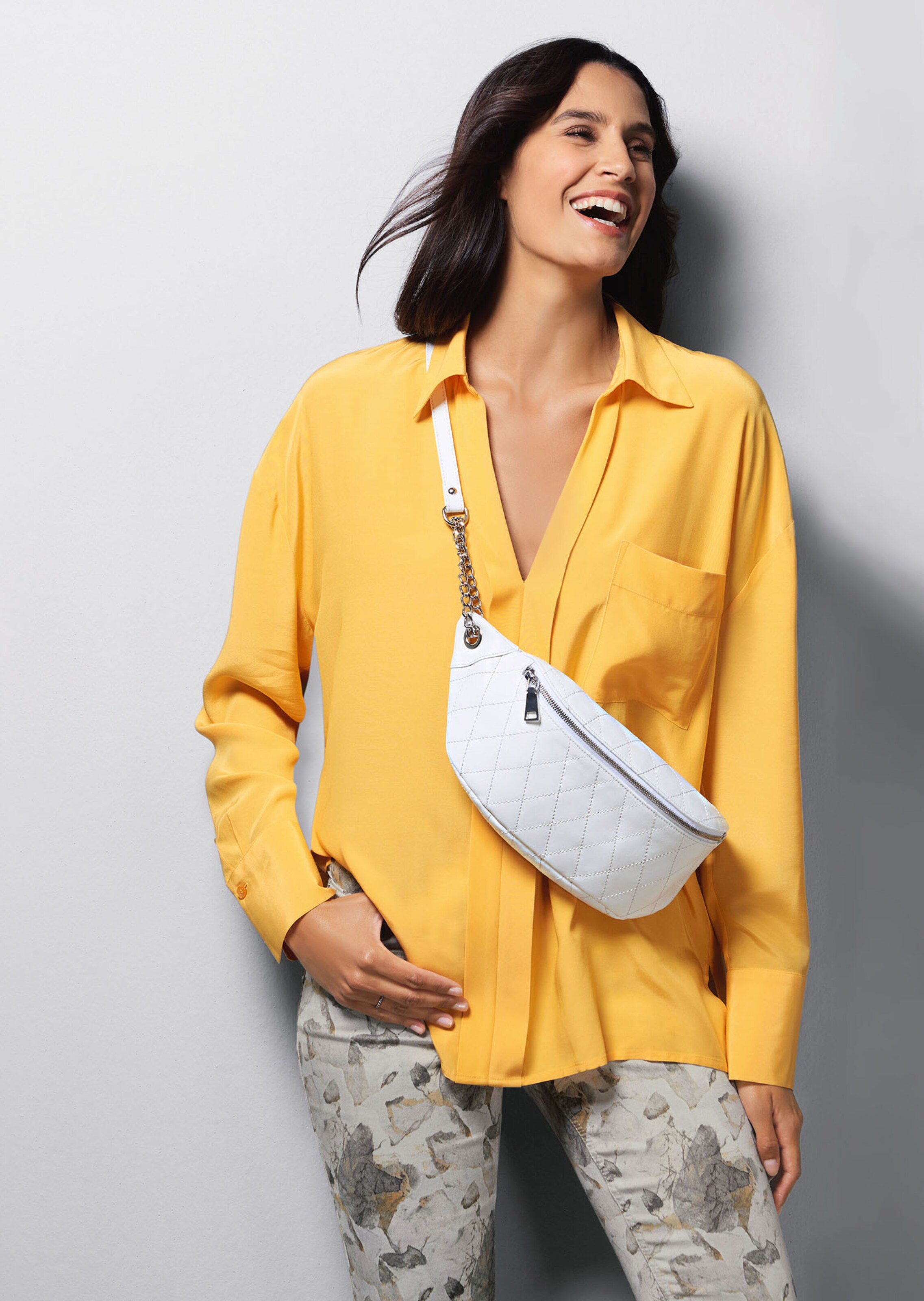 Fabriquée à partir d'un fil de viscose doux et fluide. Ligne décontractée et flatteuse pour la silhouette avec col chemisier, col en V, épaules tombantes et manches longues à revers. Ourlet droit avec fentes latérales et dos allongé. Grande poche poitrine.