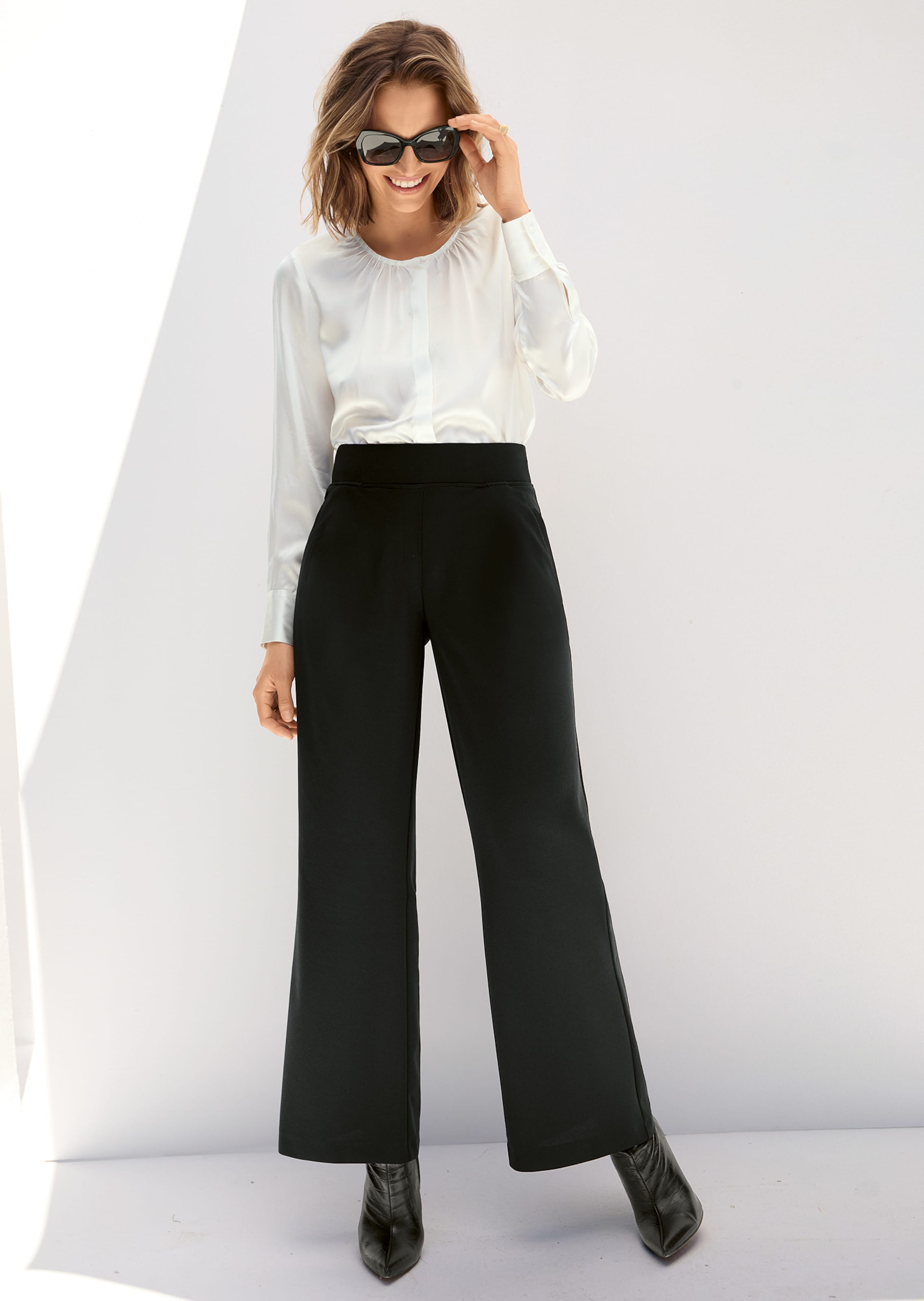 Fil naturel fluide. Encolure arrondie avec plis et boutonnage sous patte. Style chic et intemporel. Manches longues avec poignets et base arrondie.