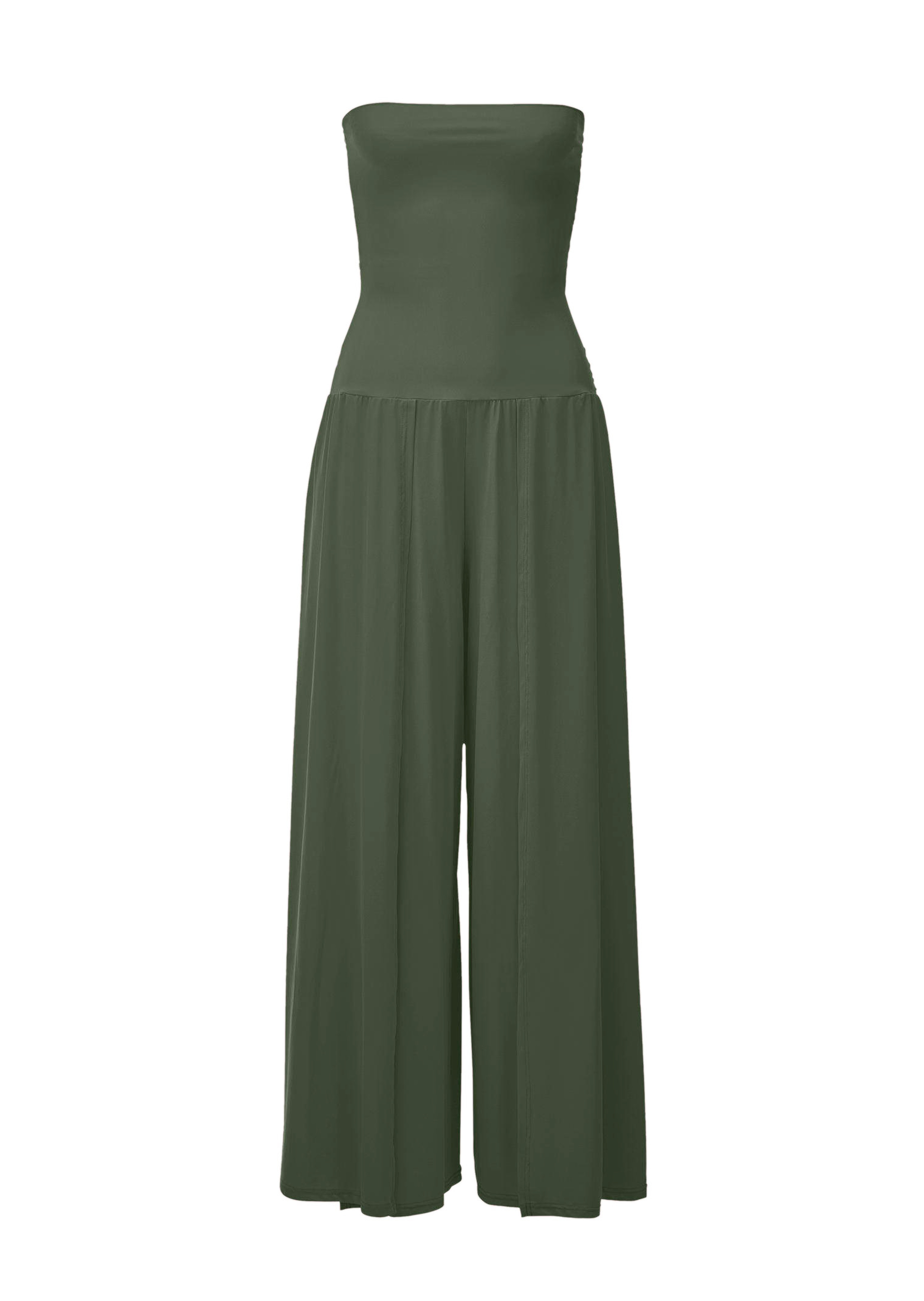 Combinaison multistyle. Peut se porter comme combi une pièce ou comme pantalon. Le haut à encolure bandeau se retourne aisément sur la taille. Les jambes amples, fendues à l’avant, ajoutent une note sophistiquée et originale. Cette combinaison estivale confectionnée dans une belle matière douce s’impose comme un indispensable de l’été.