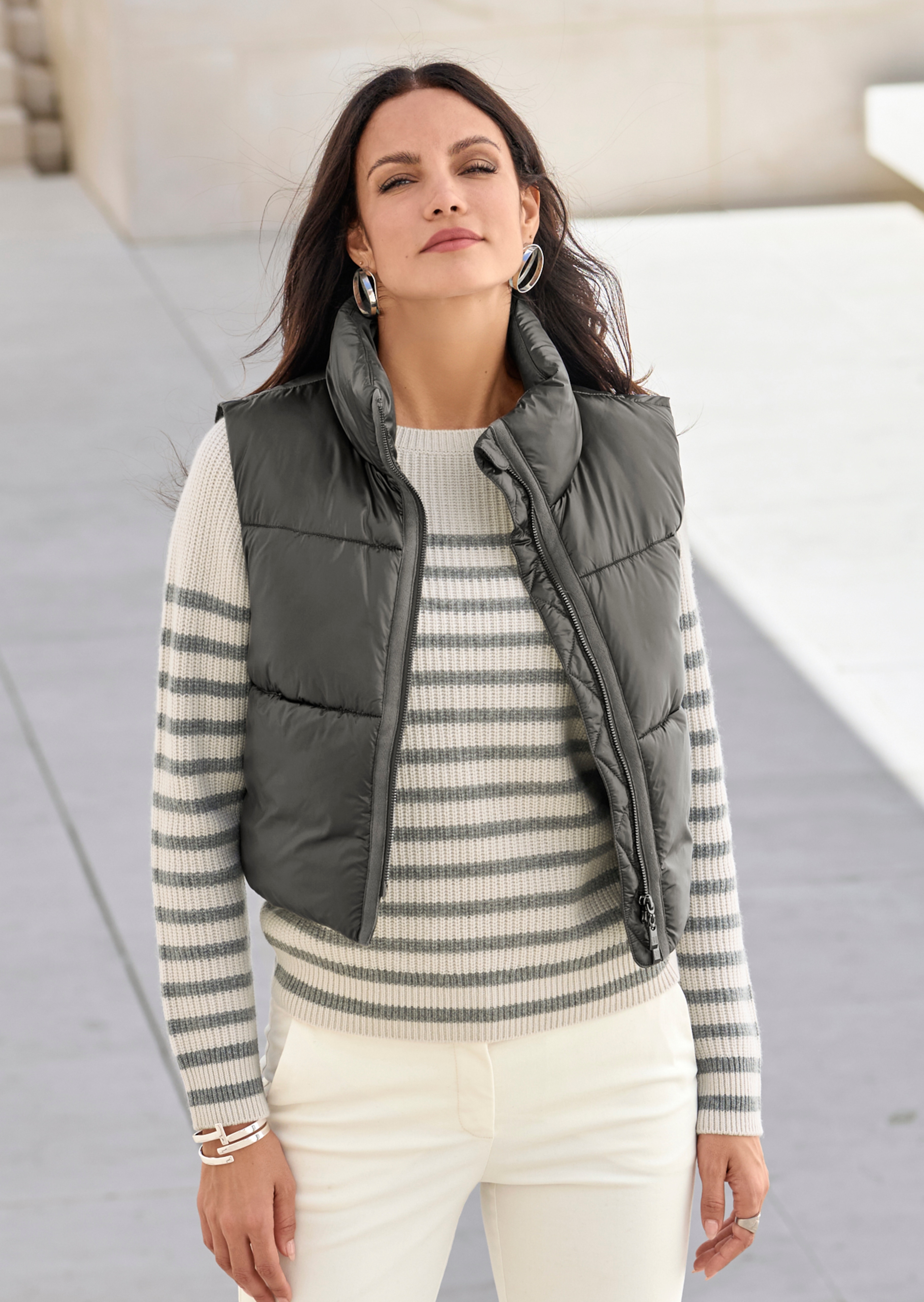 Style décontracté. Coupe courte tendance. Col montant et zip double curseur pratique. Très confortable. Fini brillant et ouatinage moelleux.