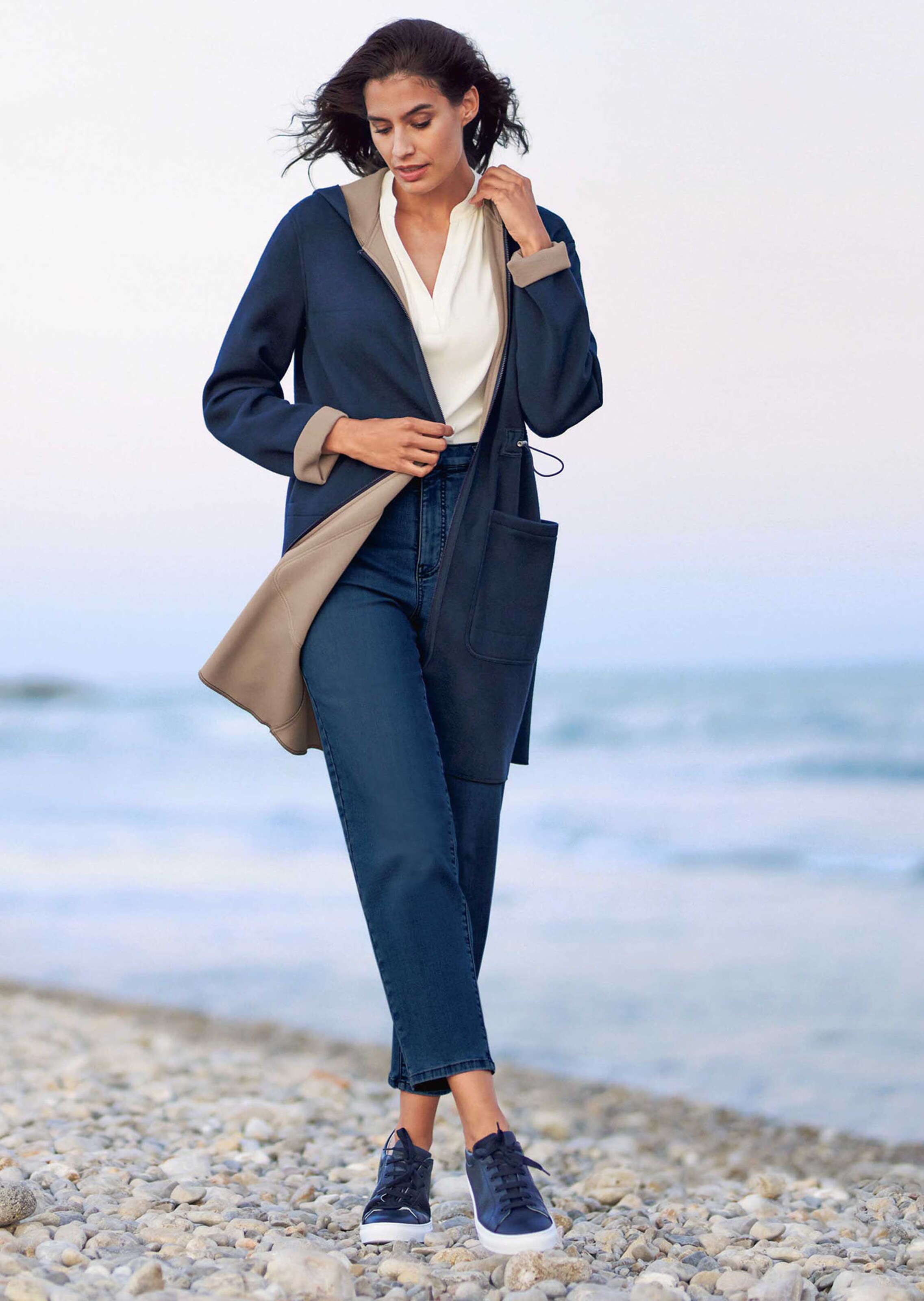 Jean mom tendance. Coupe carotte à taille haute. 4 poches. Passants et empiècement extensible au dos de la taille, pour un confort optimal.