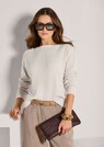 Laine mélangée douce et agréable. Fines structures en maille côtelée, pour un look tendance. Coupe courte. Encolure bateau et manches longues. Épaules légèrement descendues et luxueux boutons fantaisie.