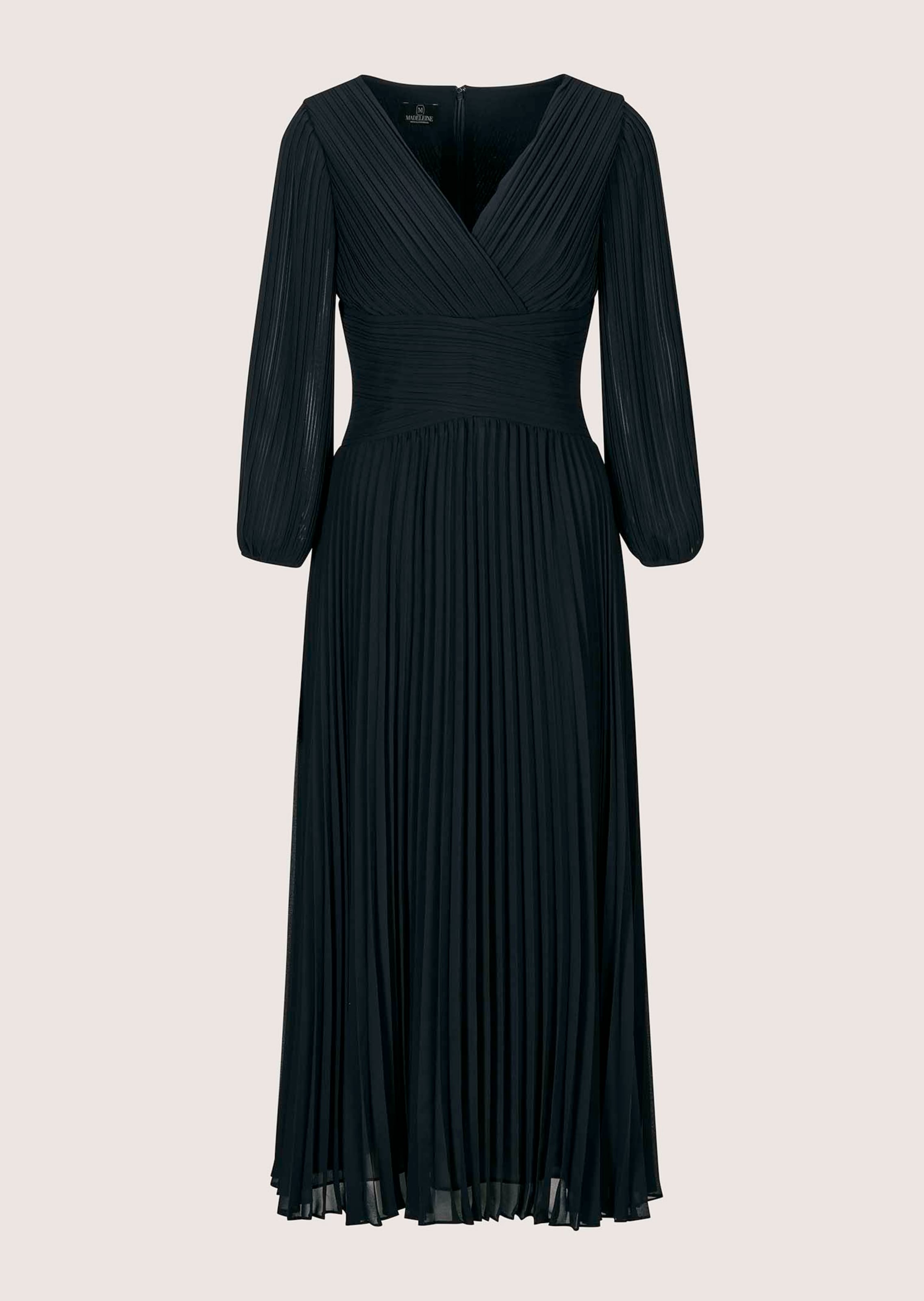Pour les occasions festives. Chiffon fin plissé, pour une ligne chic et fluide. Haut style cache-cœur et drapé à la taille, qui mettent en valeur la silhouette. Encolure en V, manches longues et zip au dos.