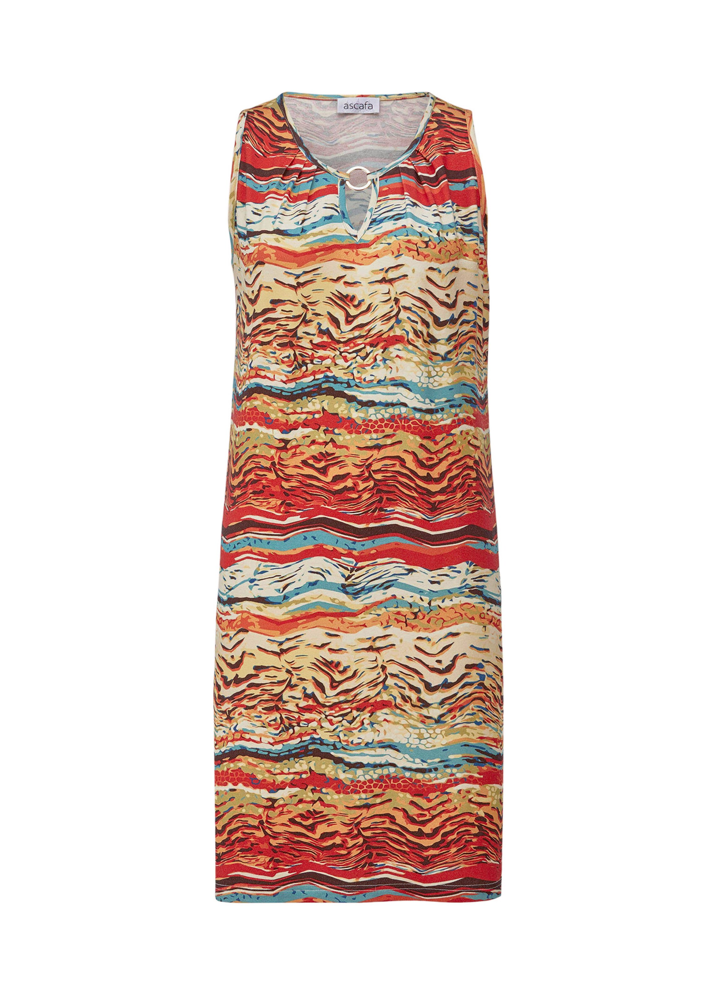 Modèle décontracté, pratique et tendance. Cette robe de loisirs sans manches ASCAFA séduit par son élégant imprimé fantaisie qui sublime votre look. Encolure arrondie rehaussée d'un anneau fantaisie et de petits plis et emmanchures passepoilées. Viscose respirante, douce et agréable, avec de l'élasthanne pour une tenue irréprochable. Idéale par temps chaud, à la maison ou pour d'agréables moments de détente à l'extérieur.