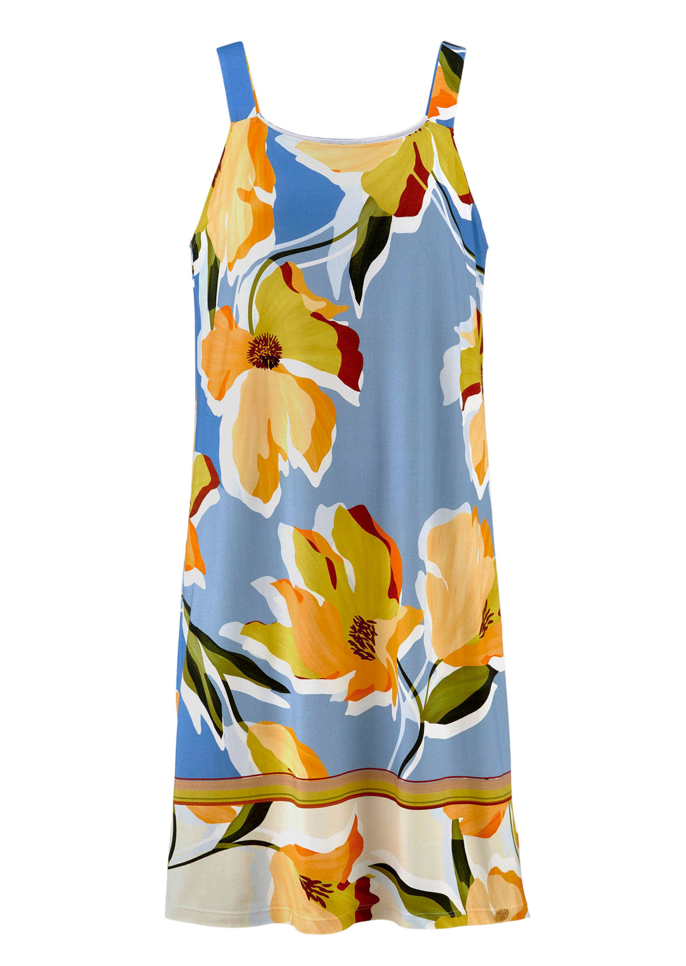 Modèle estival agréable et pratique: la robe de loisirs FERAUD en jersey de viscose doux et agréable sur la peau, légèrement extensible pour plus d'aisance. Haut doublé jusque sous le buste, bretelles en tissu et encolure droite. Charmant modèle au frais imprimé fleuri. Idéale pour les loisirs, les fêtes en plein air ou les promenades estivales.