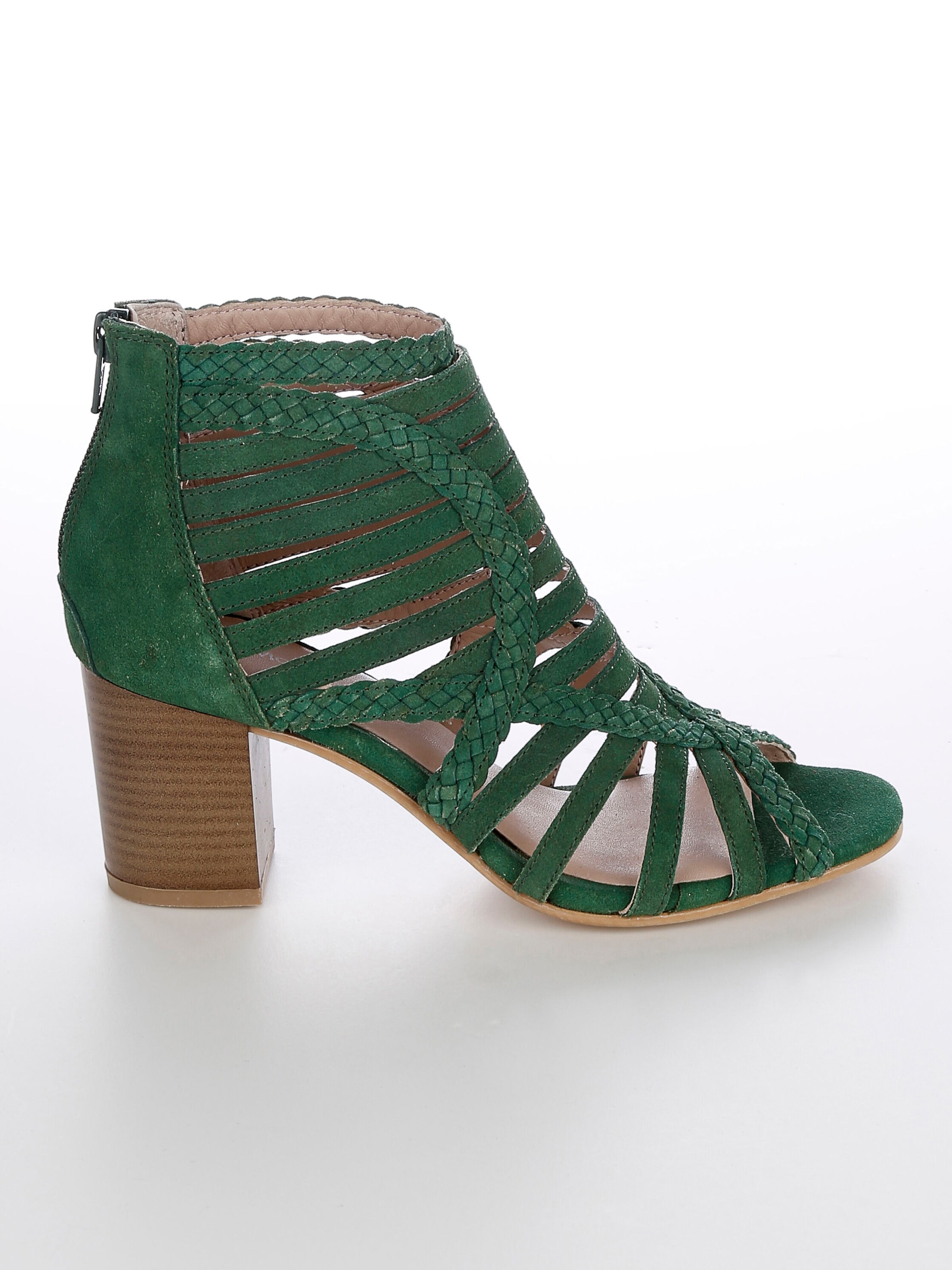- Fermeture éclair pratique au talon, Aspect tressé, Talon bloc aspect bois stratifié, Semelle de propreté souple, Maintien optimal