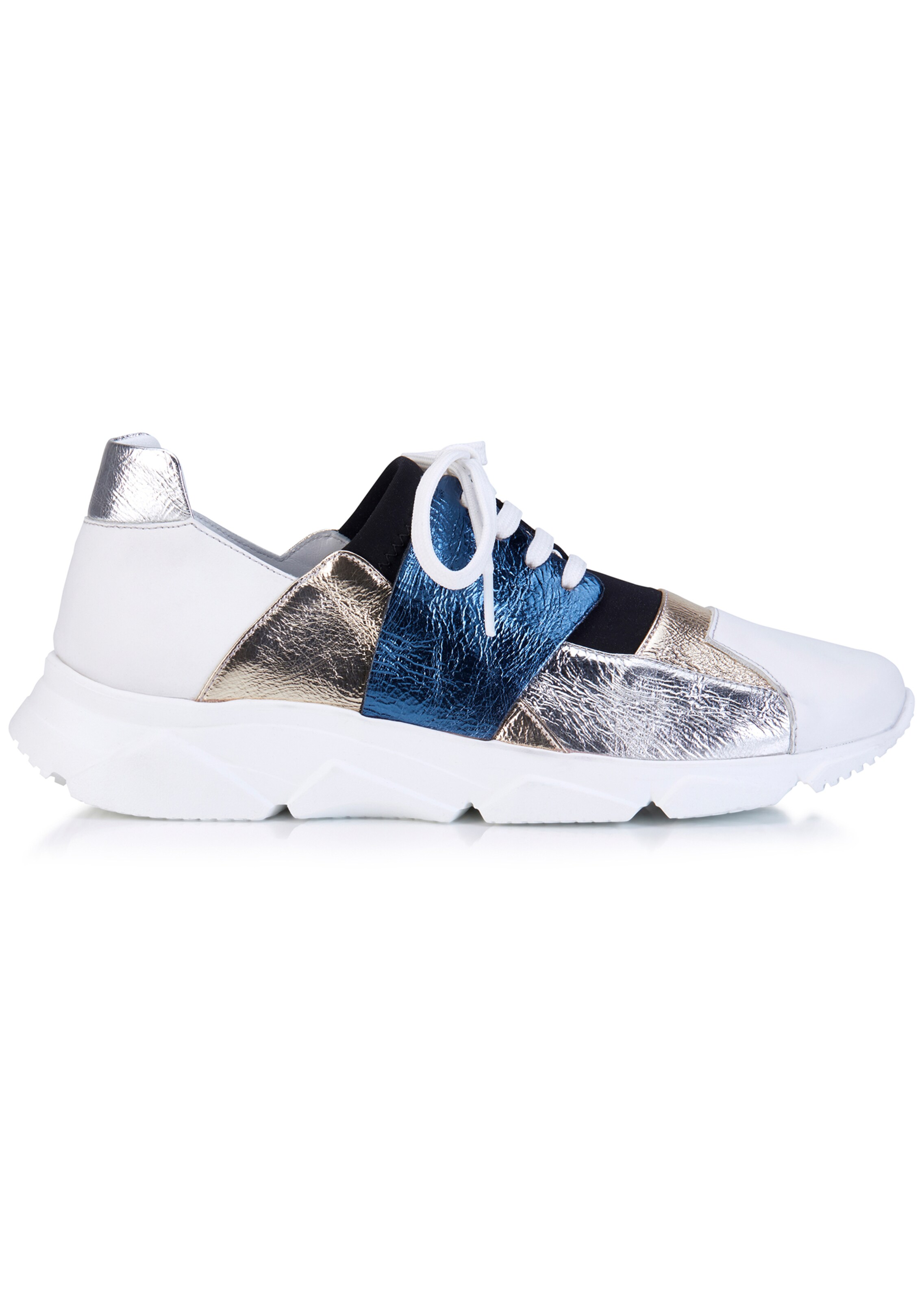Confectionnées main en Italie! Mix de cuir de vachette effet métallique. Lacets. Semelle intérieure amovible.
