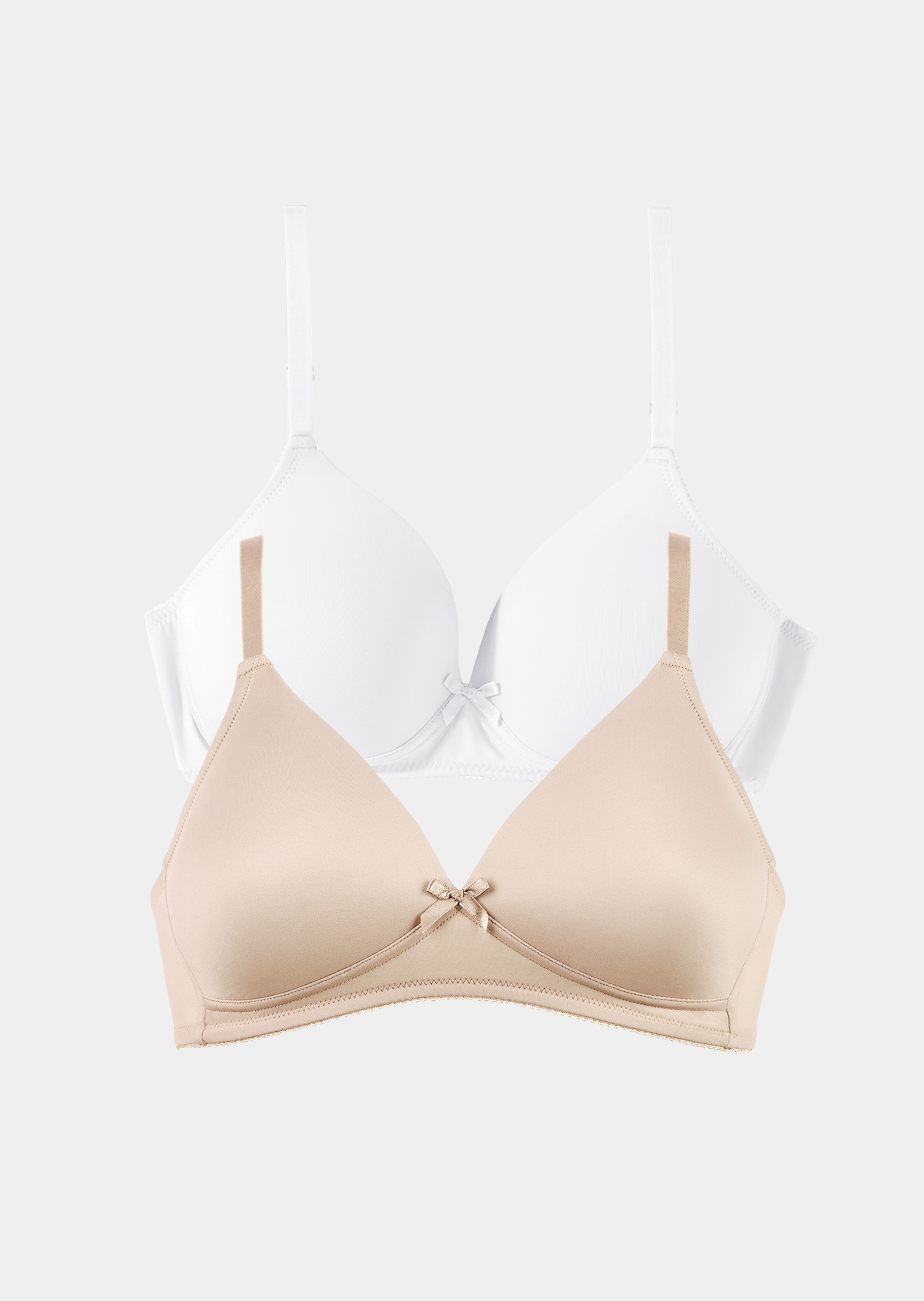 Soutien-gorge sans armatures de NATURANA en lot de 2. Lot : 1x couleur et 1x blanc ! Les bonnets souples sculptent la poitrine et offrent un maintien optimal. Soutien-gorge avec bonnets lisses, idéal sous les hauts moulants ; discrétion absolue, rien ne transparaît ! Bretelles réglables et bande douce sous poitrine. Agrafage dos réglable sur 3 positions pour un confort maximal.