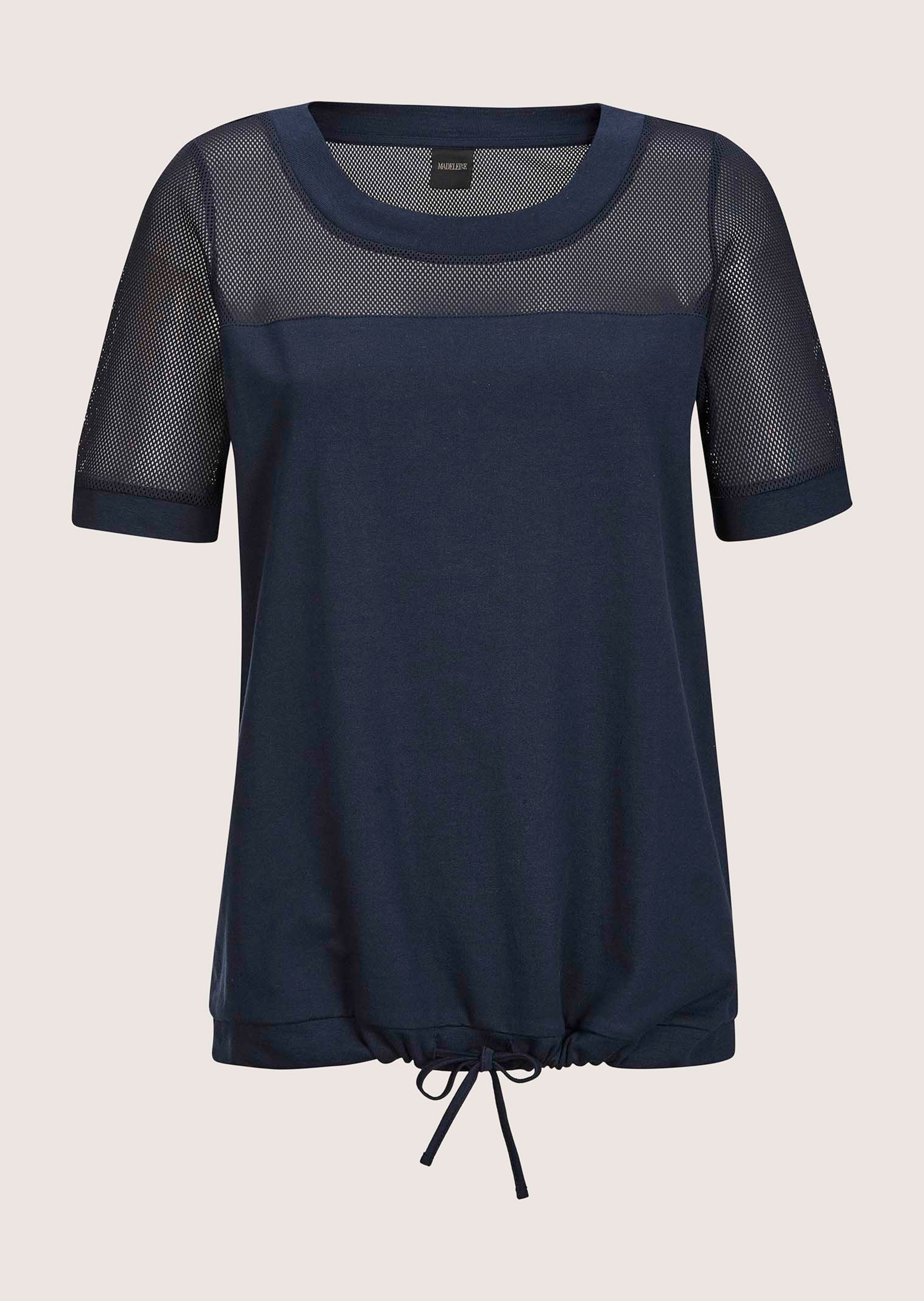 Empiècements en filet aux épaules et aux manches. Coupe ample. Bords-côtes à l'encolure arrondie et au bas des manches courtes. Lien coulissant réglable à la base.
