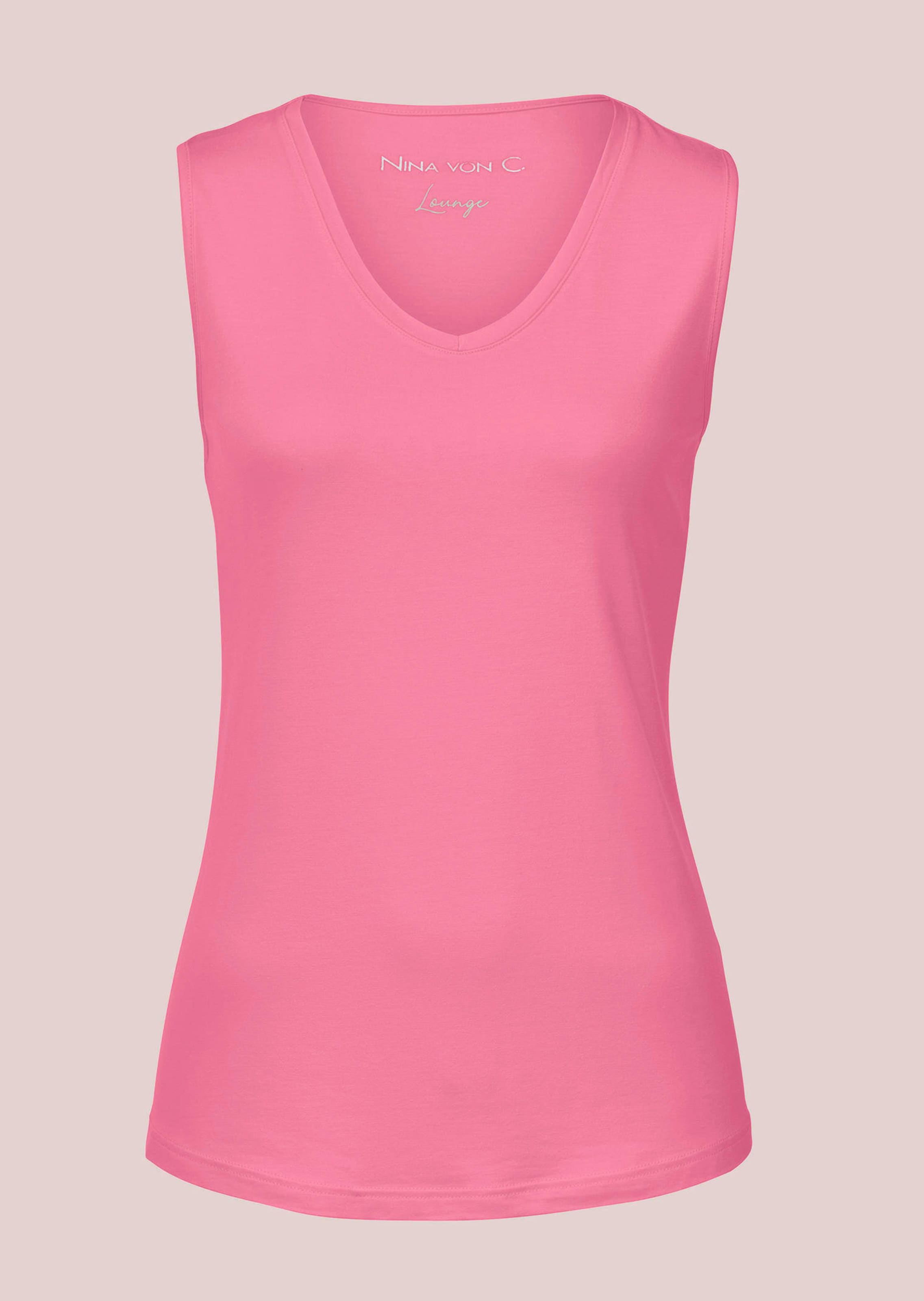 Top sans manches NINA VON C. Matière mélangée coton/modal, douce et agréable sur la peau. Jersey fin d'une tenue irréprochable. Style féminin, avec passepoils sur l'encolure en V et sur les emmanchures. Modèle intemporel très confortable à la coupe droite décontractée.