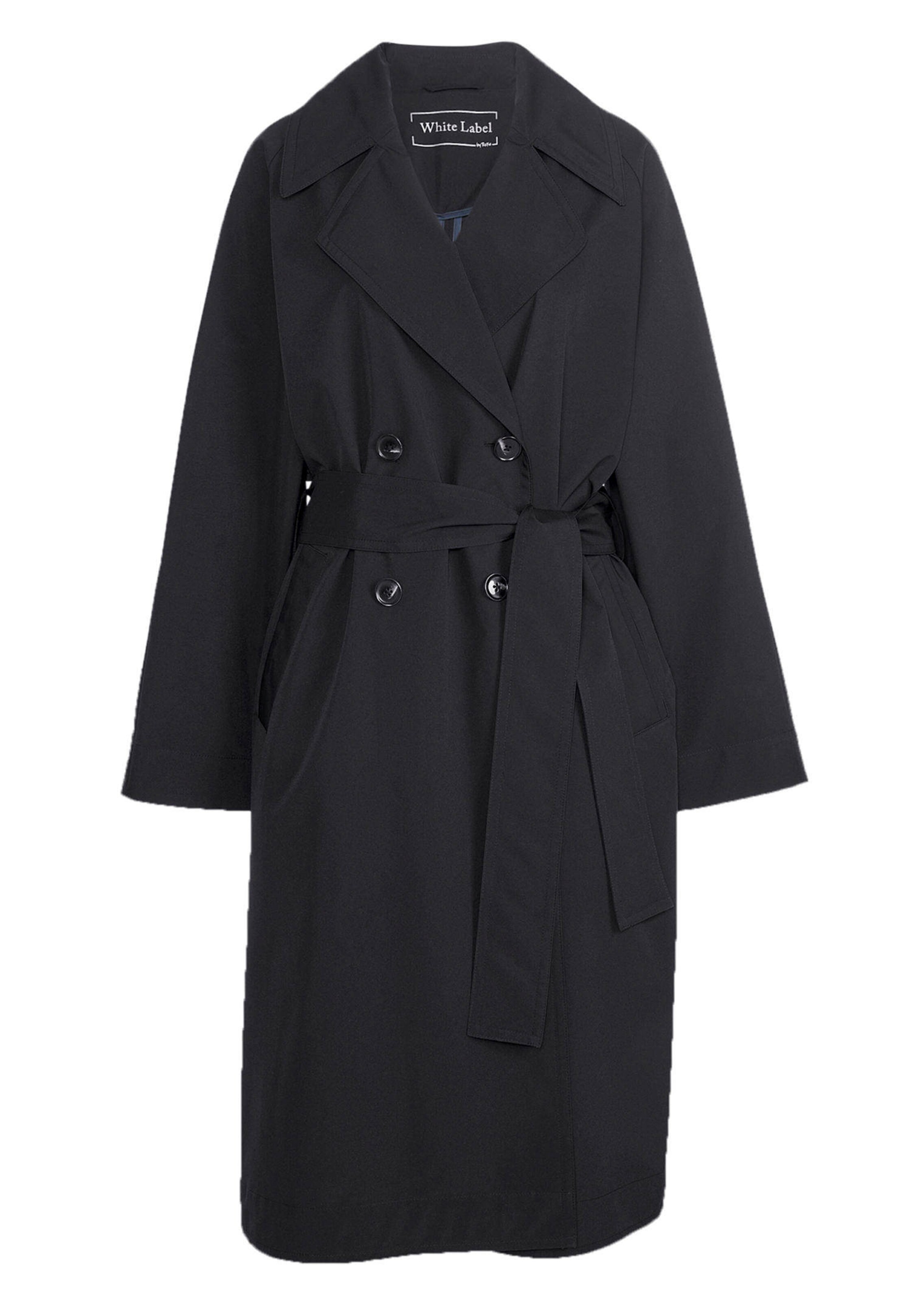 Manches larges. Double boutonnage, grand col à revers. Large ceinture à nouer. Non doublé.