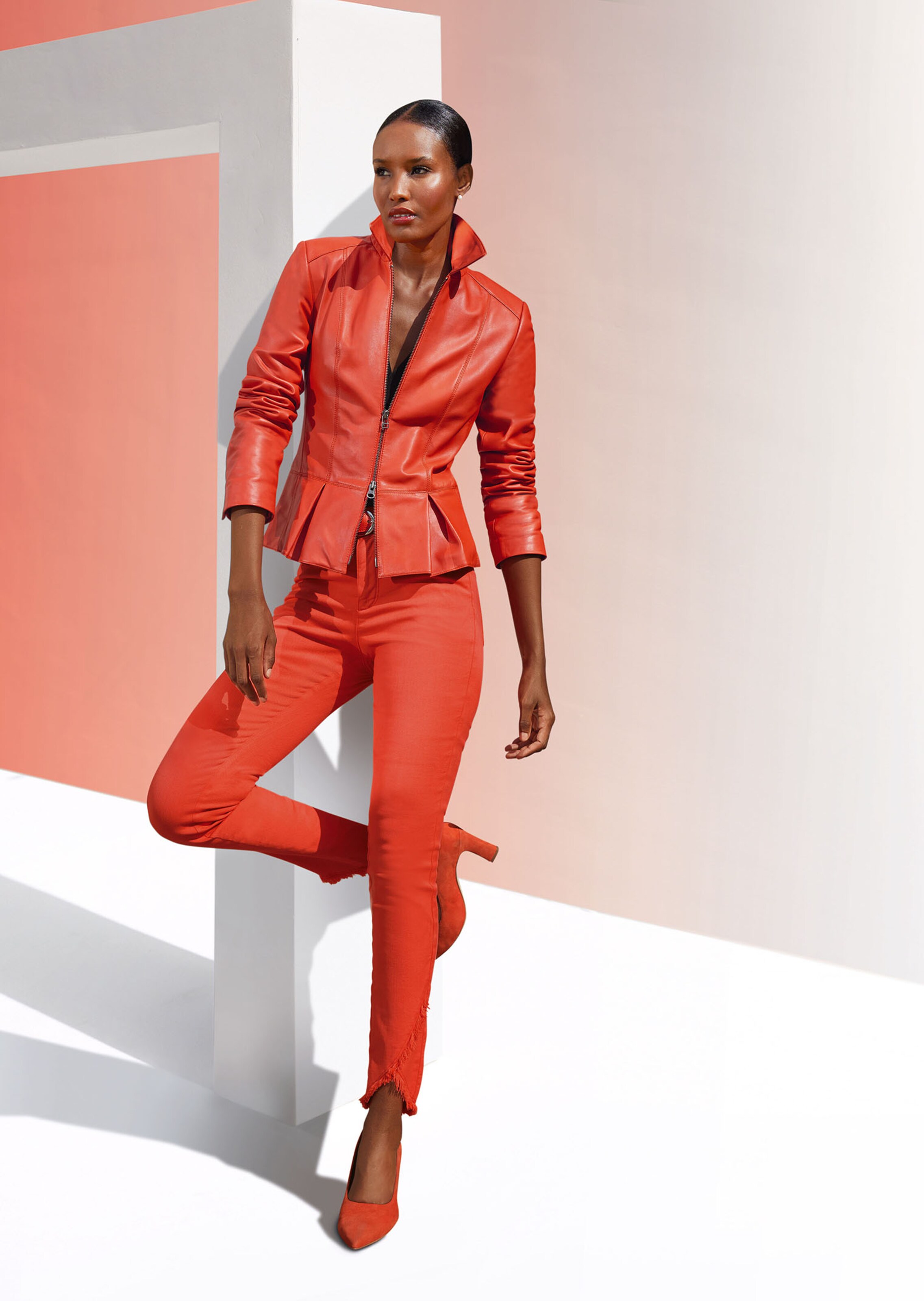 Coupe courtes. avec basque. Col chemise, zip double curseur et fentes au bas des manches longues fermées par boutons-pression. Entièrement doublée.