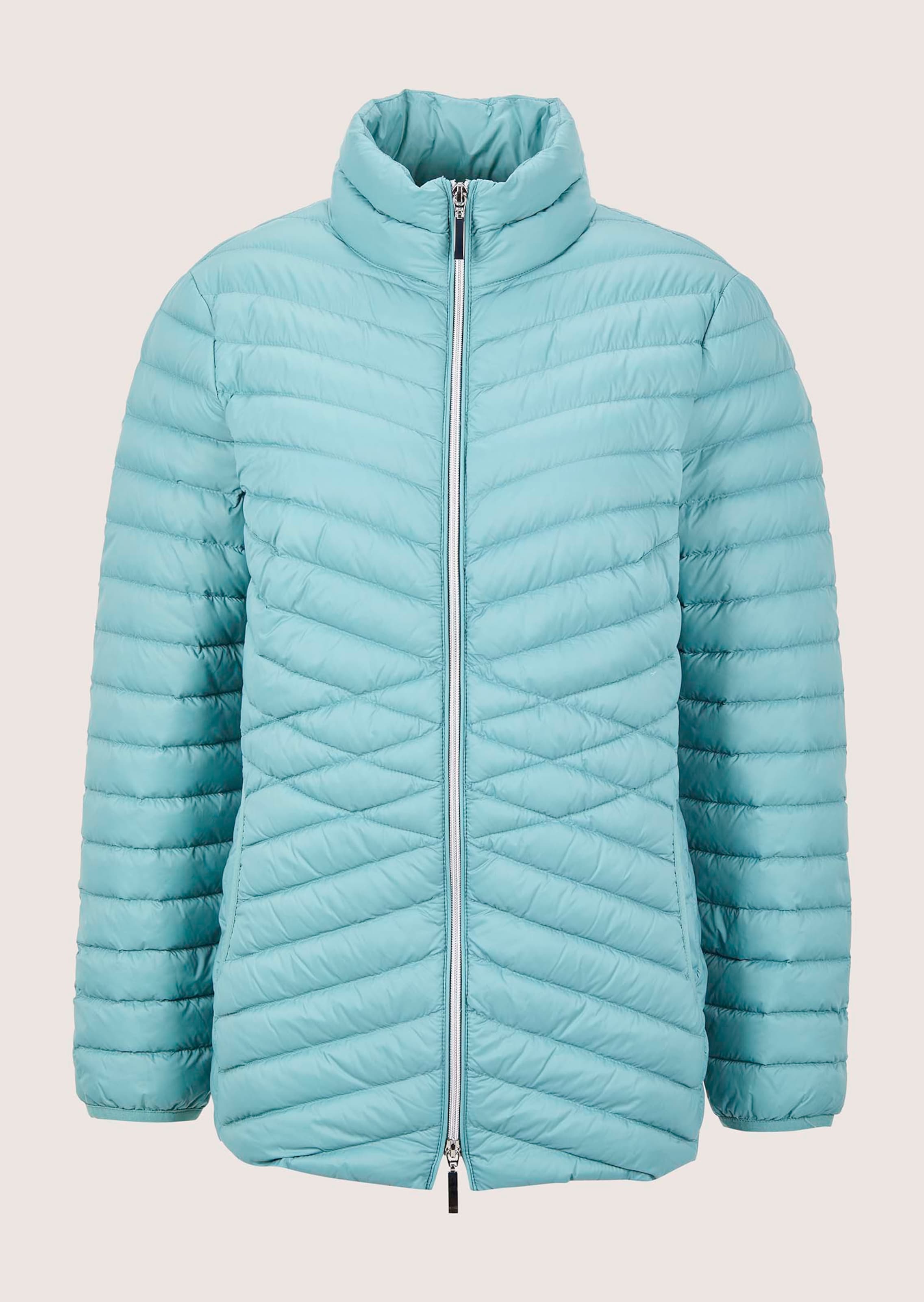 Merveilleusement chaude et légère, avec garnissage souple duvet/plumes. Col montant qui protège bien du froid et passepoils extensibles sur les poches. Surpiqûres qui flattent la silhouette, pour une ligne féminine. Zip double curseur qui s'ouvre aussi par le bas: très pratique en position assise ou à vélo.