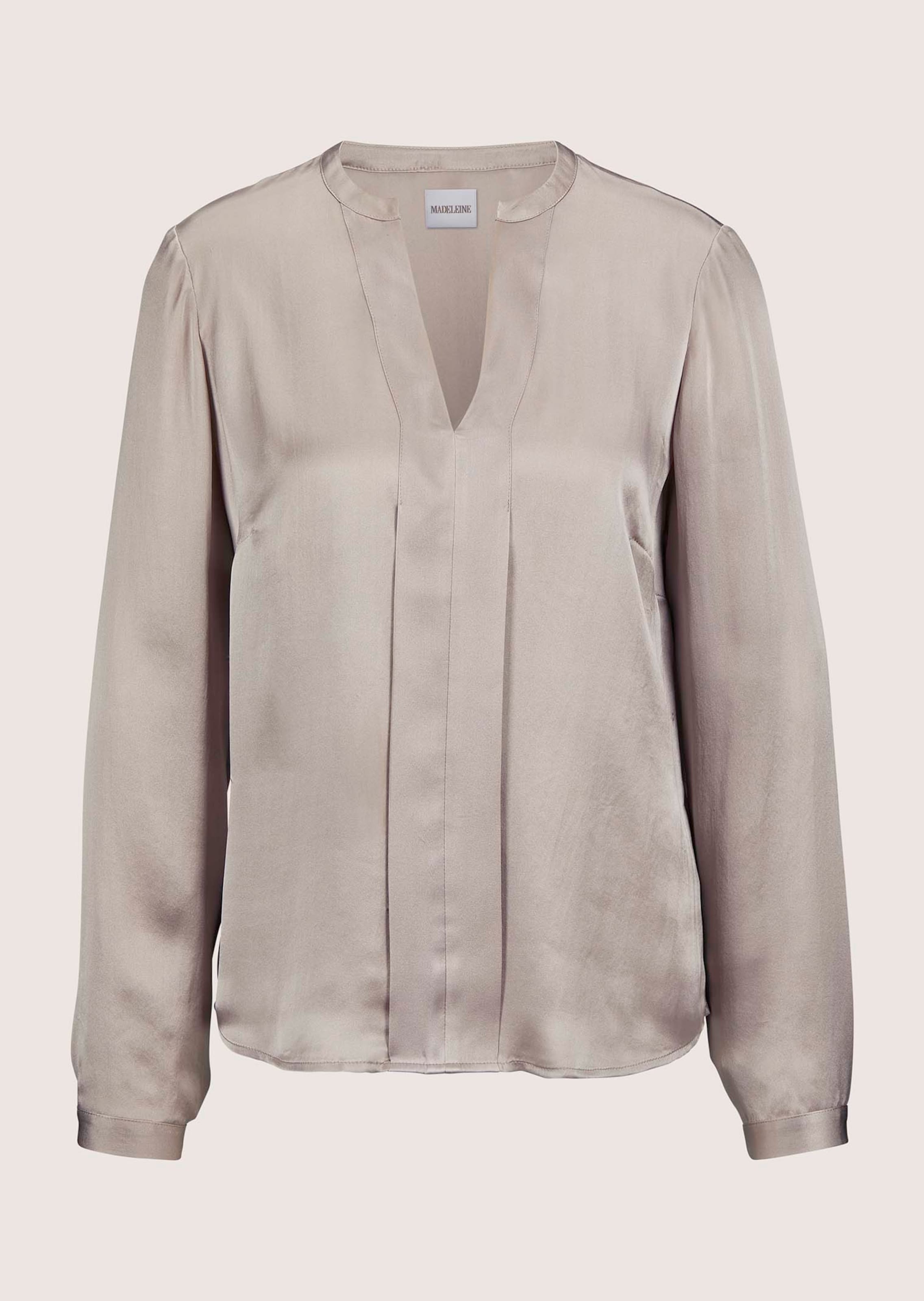 Satin au brillant subtil, en luxueux fil naturel. L'encolure arrondie avec fente en V est rehaussée d'un empiècement. Coupe tunique décontractée. Base arrondie et manches longues à poignets.