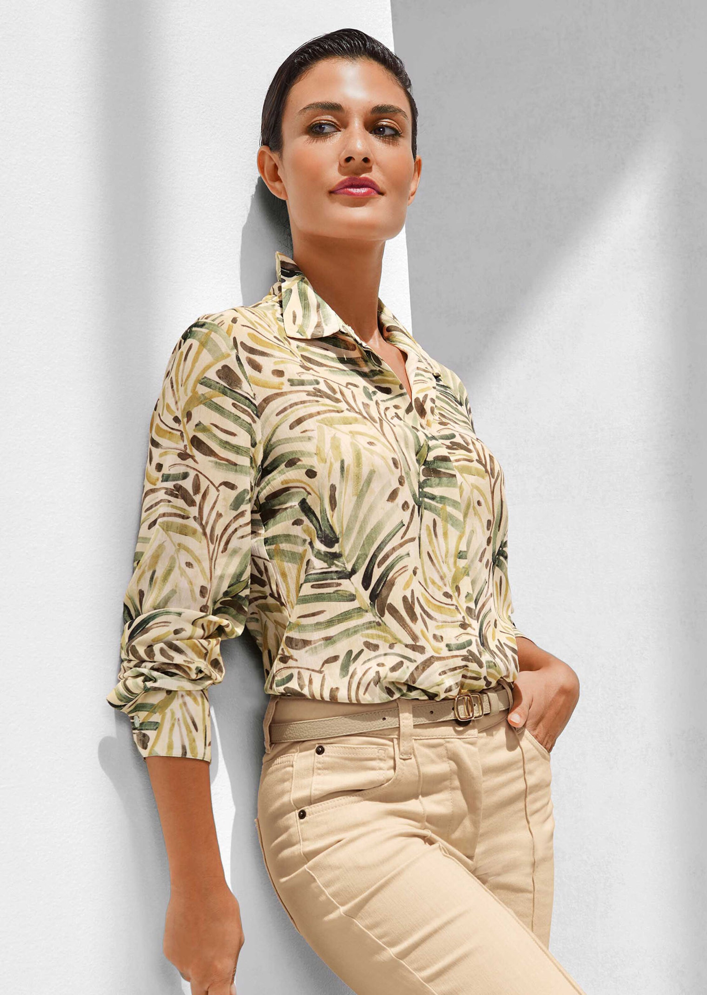 Modèle élégant avec imprimé unique. Coupe décontractée avec manches longues et fentes latérales.