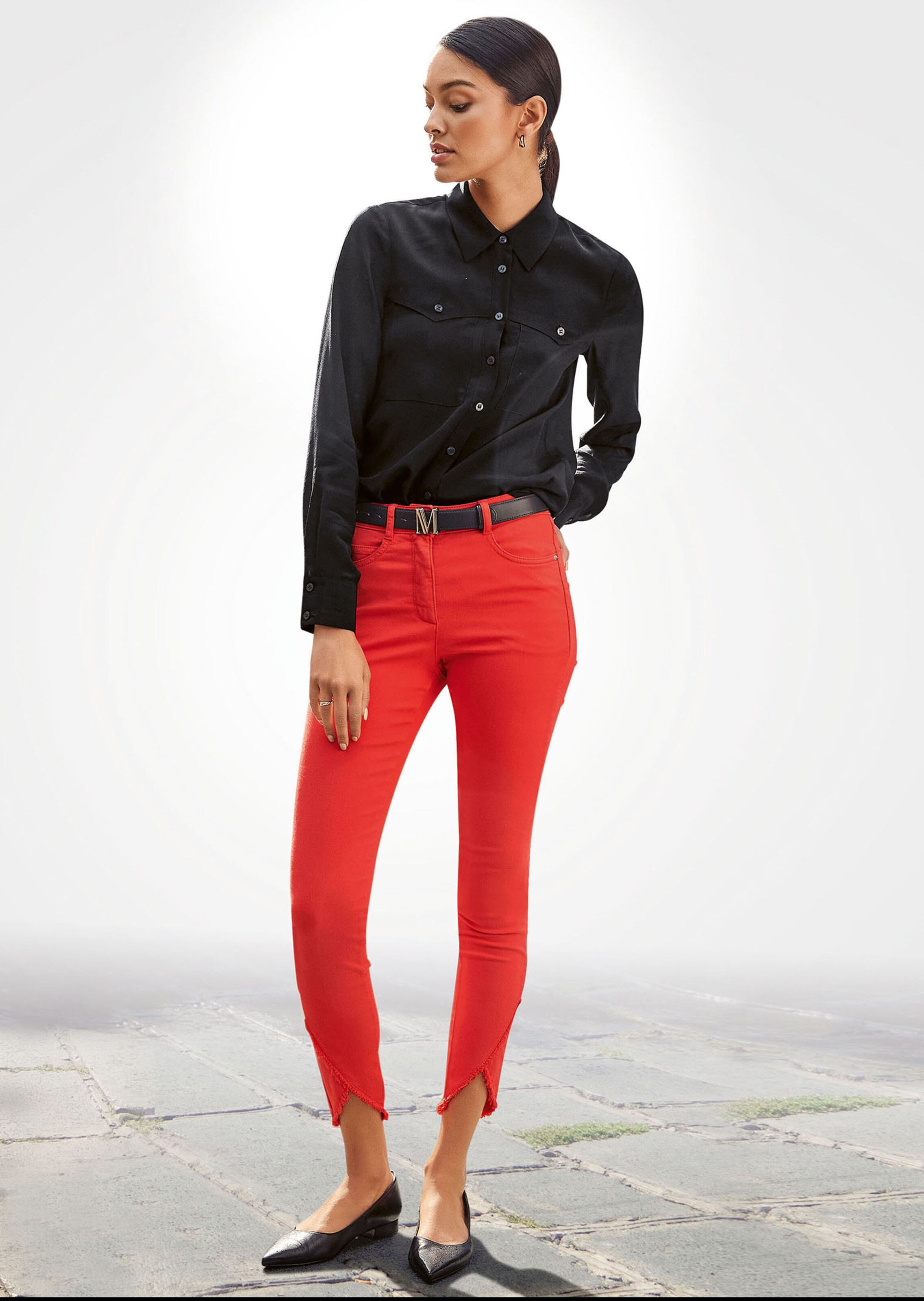 Chic et facile à coordonner, en matière mélangée fluide viscose/soie. Bande de boutonnage, poches poitrine à rabat boutonné et pli au dos. Fentes latérales et manches longues avec poignets à 2 boutons. Base arrondie plus longue au dos.