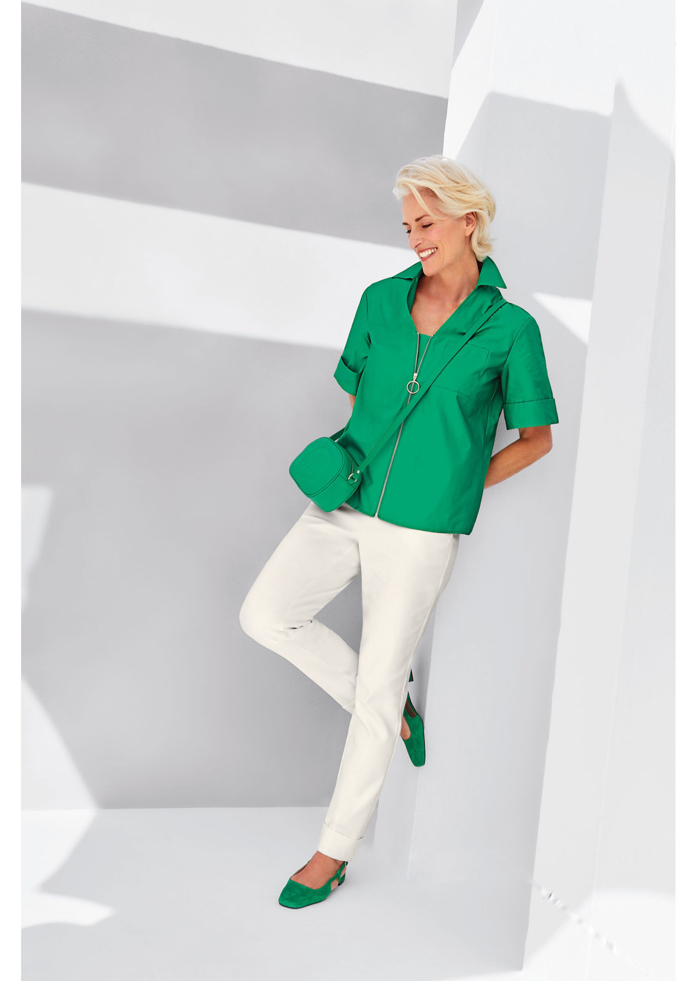 Style sport décontracté à manches courtes. Zip devant et col à rabattre. Coupe décontracté en fil agréablement frais.