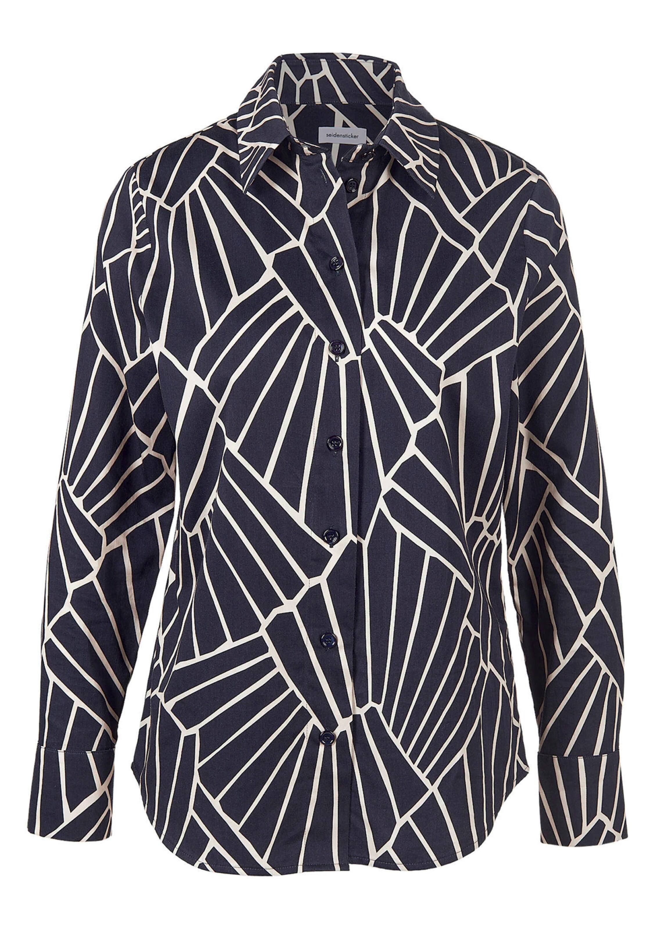 Das raffinierte, grafische Muster macht die Hemdbluse von SEIDENSTICKER zum absoluten Blickfang. Aus reiner Satinqualität bringt die Bluse eine hochwertige Qualität mit, die Sie auf der Haut spüren können. Die schmale Passform betont die feminine Silhouette. Klassische Details wie der Hemdblusenkragen, die langen Ärmel mit 2-Knopf-Manschette und eine Passe im Rückteil sorgen für stilvollen Classy Chic. Rückenlänge in Gr. 36 ca. 66 cm. Styling-Tipp: Unifarbene Hosen oder Röcke sind zu diesem Print ein Muss!