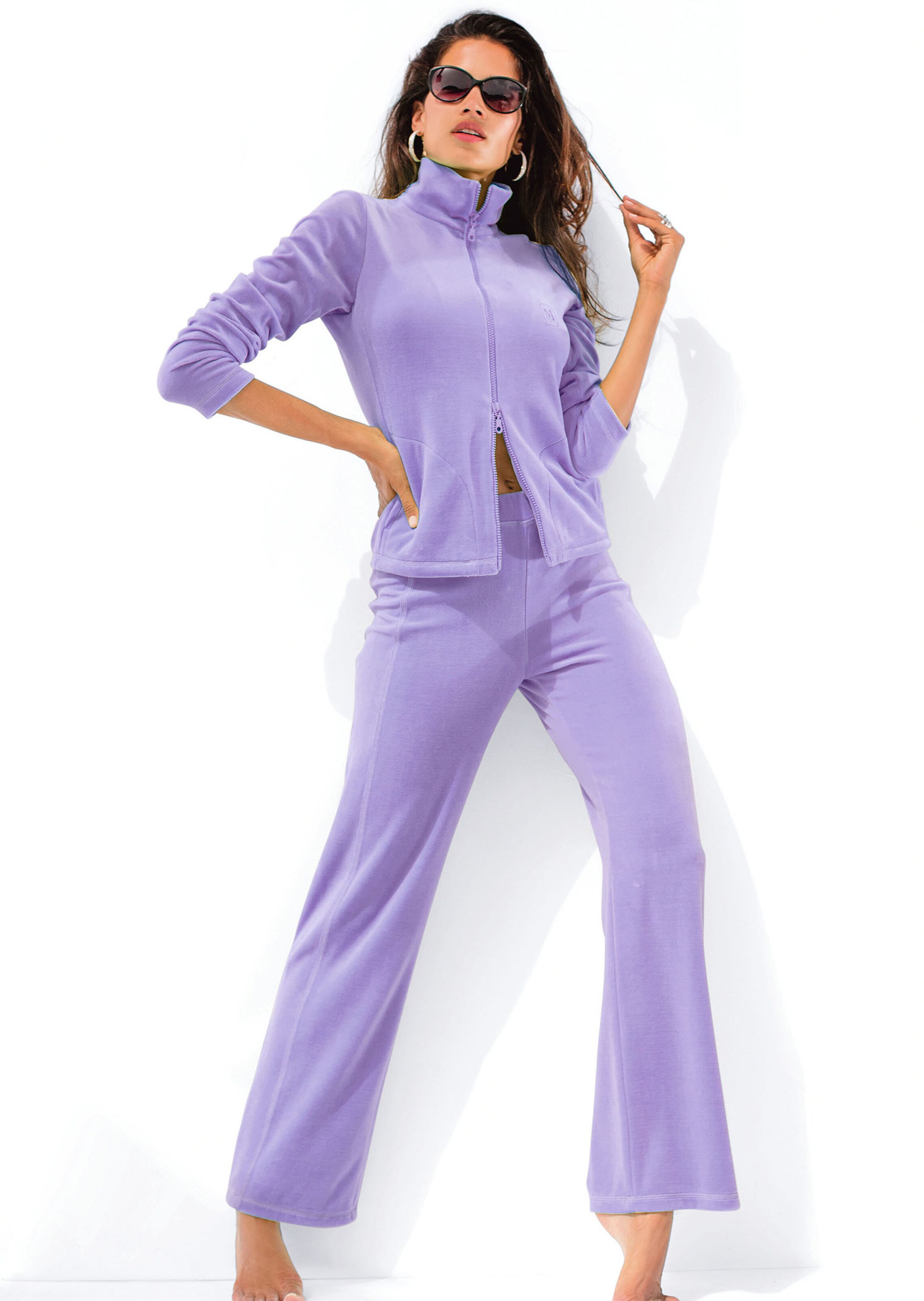 Veste courte et cintrée avec zip double curseur et poches côtés. Pantalon ample.