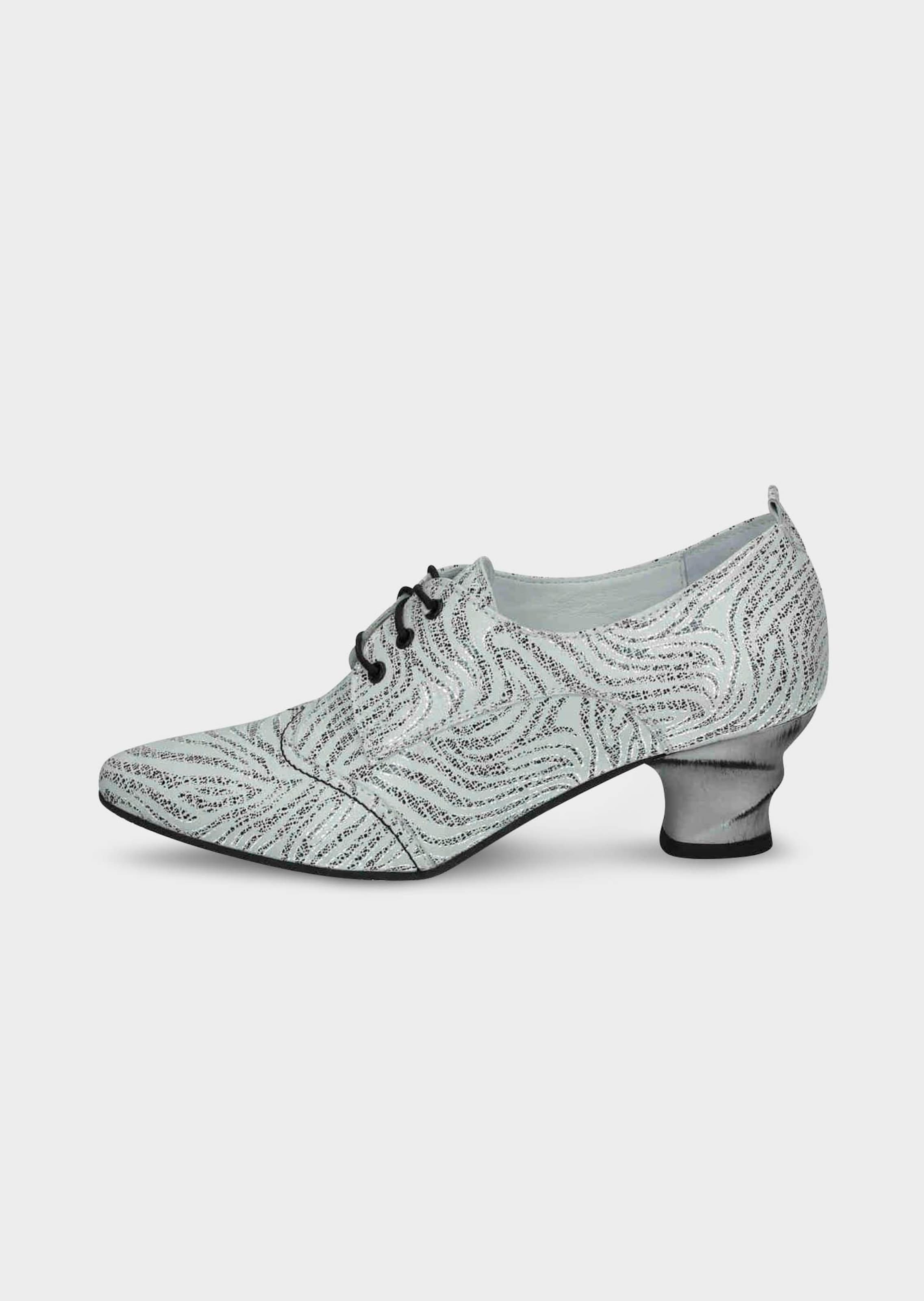 Escarpins à lacets de forme pointue, en cuir avec motif zèbre.